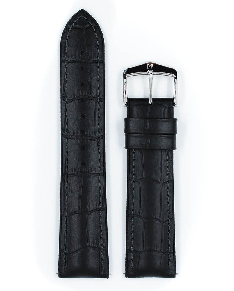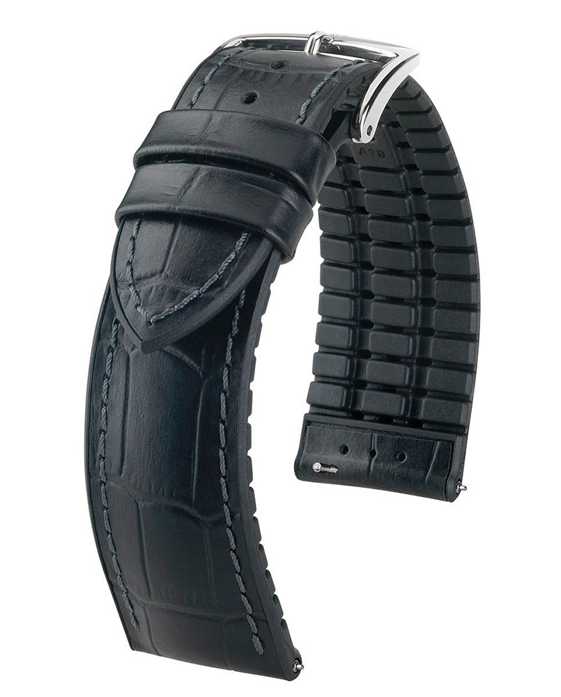 Řemínek k hodinkám Hirsch Paul vyrobený z vysoce kvalitní italské teletiny s aligátoří strukturou a gumou. Klasický tvar opasku a exkluzivní vzhled dodávají modelu Paul naprosto nadčasový charakter. Skutečný standard, který díky své revoluční gumové podrážce zaujme nejen svou univerzálností, ale také odolností. Řemínek je voděodolný a speciální drážky na spodní straně umožňují ruce dýchat a odvádět přebytečnou vodu po plavání. Hirsch Paul byl vybaven teleskopy, které umožňují připevnění k pouzdru hodinek bez použití nářadí. K dispozici v 18 mm, 19 mm, 20 mm, 21 mm, 22 mm, 24 mm a v pánských a dámských délkách, aby vyhovovaly všem hodinkám.