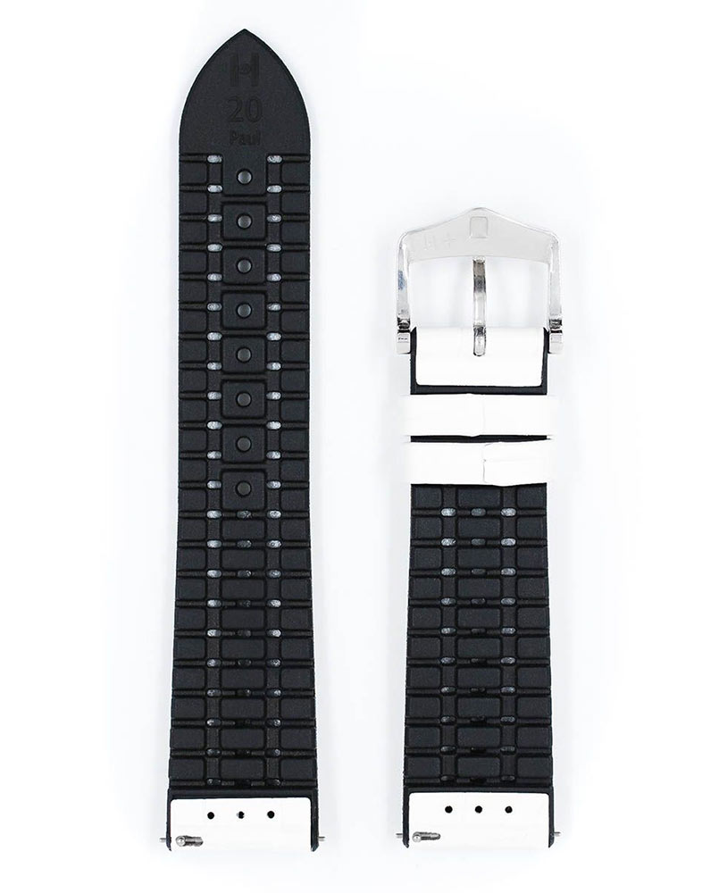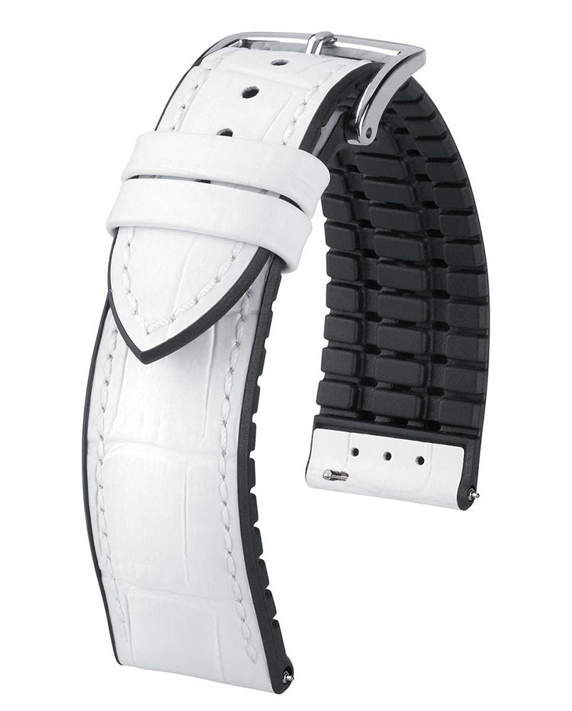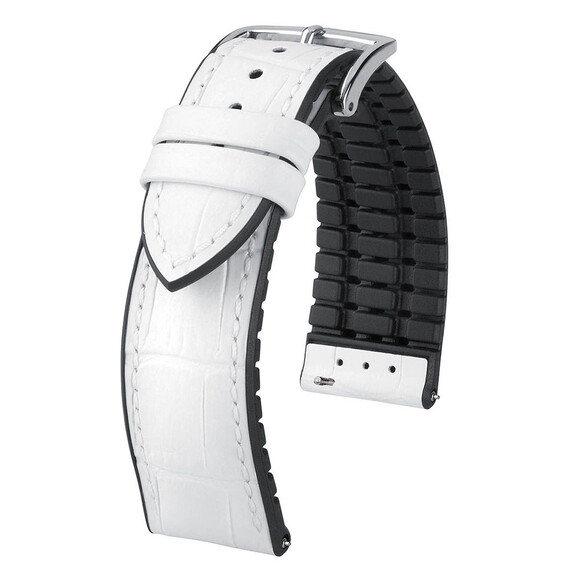 Řemínek k hodinkám Hirsch Paul vyrobený z vysoce kvalitní italské teletiny s aligátoří strukturou a gumou. Klasický tvar opasku a exkluzivní vzhled dodávají modelu Paul naprosto nadčasový charakter. Skutečný standard, který díky své revoluční gumové podrážce zaujme nejen svou univerzálností, ale také odolností. Řemínek je voděodolný a speciální drážky na spodní straně umožňují ruce dýchat a odvádět přebytečnou vodu po plavání. Hirsch Paul byl vybaven teleskopy, které umožňují připevnění k pouzdru hodinek bez použití nářadí. K dispozici v 18 mm a 20 mm.