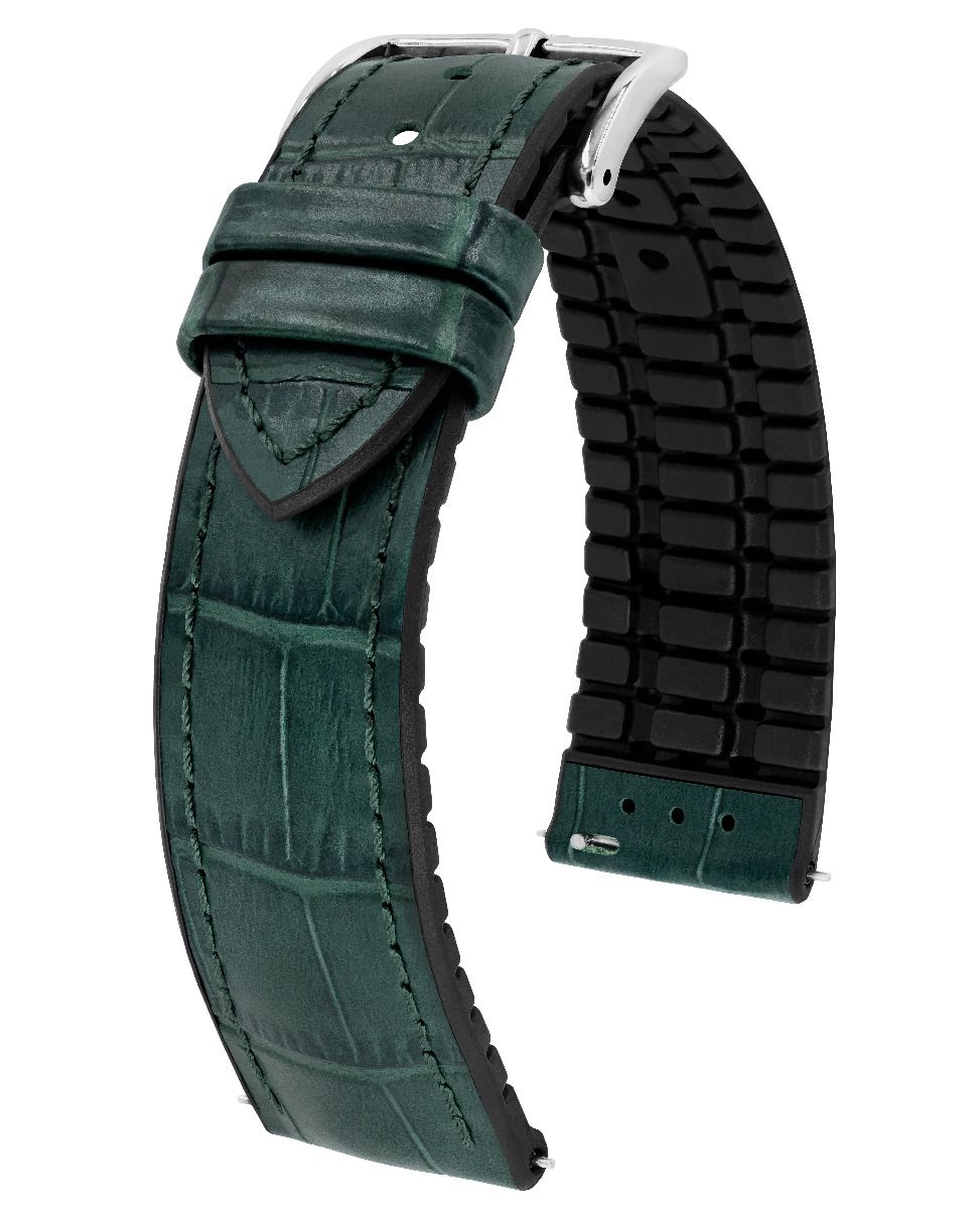 Řemínek k hodinkám Hirsch Paul vyrobený z vysoce kvalitní italské teletiny s aligátoří strukturou a gumou. Klasický tvar opasku a exkluzivní vzhled dodávají modelu Paul naprosto nadčasový charakter. Skutečný standard, který díky své revoluční gumové podrážce zaujme nejen svou univerzálností, ale také odolností. Řemínek je voděodolný a speciální drážky na spodní straně umožňují ruce dýchat a odvádět přebytečnou vodu po plavání. Hirsch Paul byl vybaven teleskopy, které umožňují připevnění k pouzdru hodinek bez použití nářadí. K dispozici v 18 mm a 20 mm.