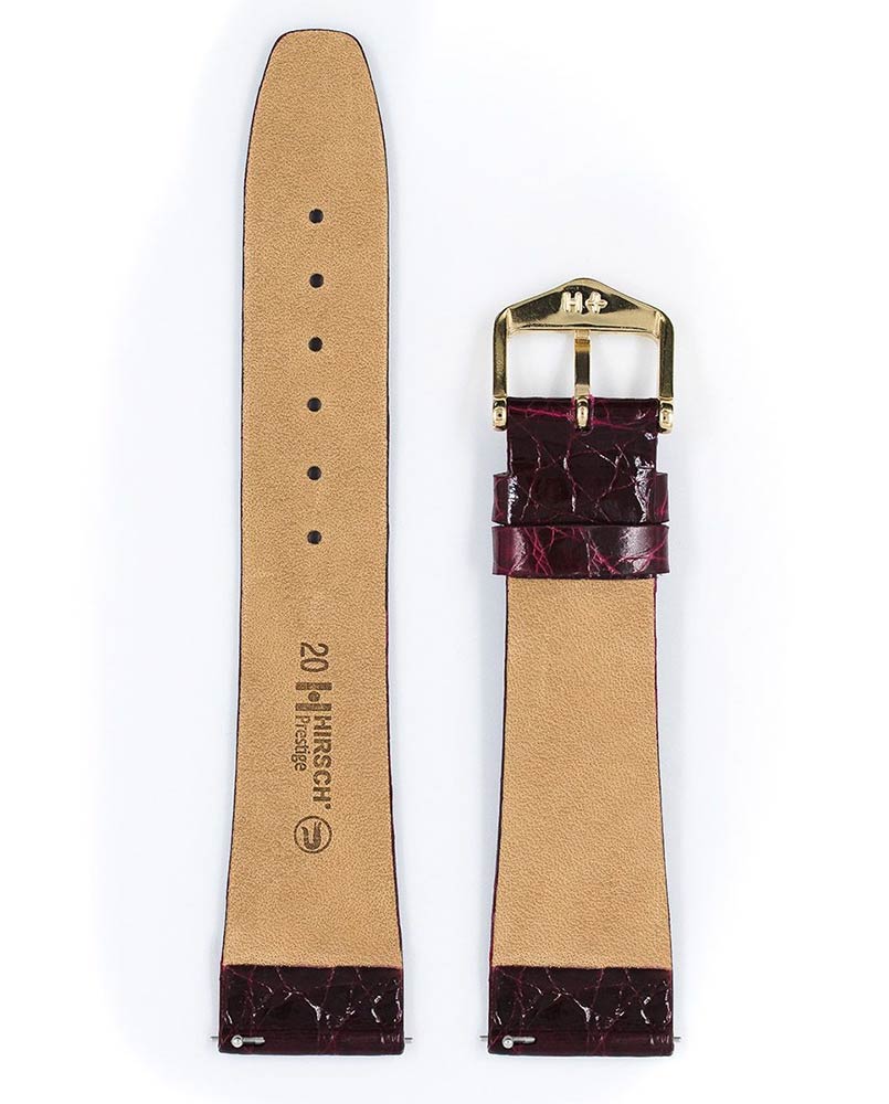 Ušlechtilý řemínek k hodinkám Hirsch Prestige , který se bude dokonale hodit k tradičním dámským i pánským hodinkám. Ručně zpracovaná krokodýlí kůže kajmana hluboce barvená v sudech. Vyznačuje se typickou povrchovou strukturou v podobě mřížky složené z větších a menších šupin. Caiman crocodilus je luxusní materiál s lesklou povrchovou úpravou. Kajman pochází z Jižní Ameriky, kde se vyskytuje v oblasti táhnoucí se mezi jižním Mexikem a severní Argentinou. Ideální nabídka pro prestižní, elegantní hodinky. Použití speciálních teleskopů umožňuje montáž a demontáž pásu bez použití nářadí. Hirsch Prestige je k dispozici ve velikostech 12 mm, 14 mm, 15 mm, 16 mm, 17 mm, 18 mm, 19 mm a 20 mm.