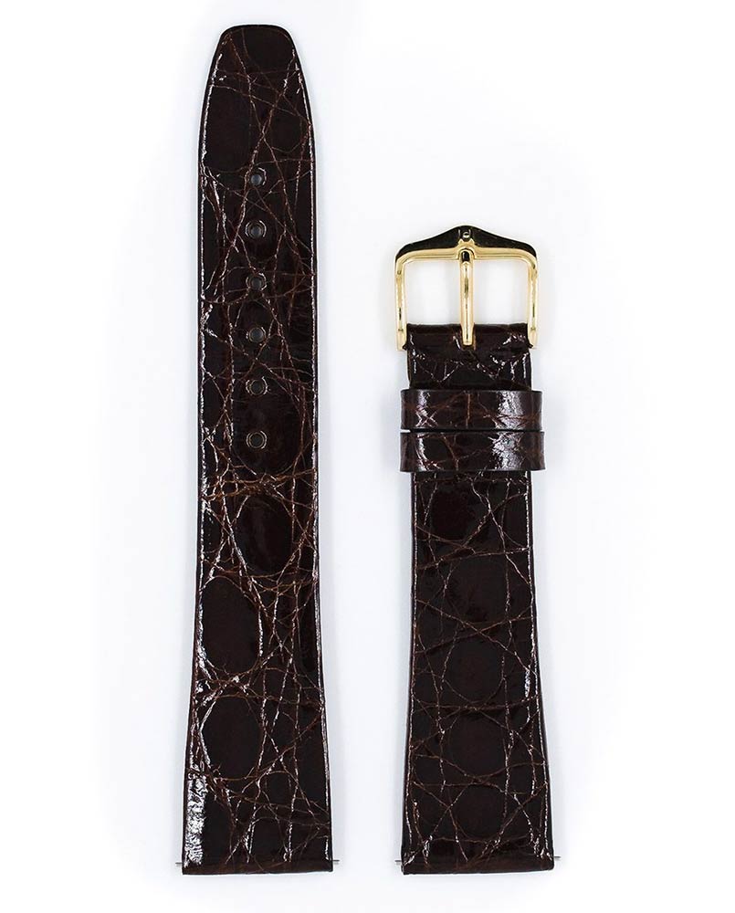 Ušlechtilý řemínek k hodinkám Hirsch Prestige , který se bude dokonale hodit k tradičním dámským i pánským hodinkám. Ručně zpracovaná krokodýlí kůže kajmana hluboce barvená v sudech. Vyznačuje se typickou povrchovou strukturou v podobě mřížky složené z větších a menších šupin. Caiman crocodilus je luxusní materiál s lesklou povrchovou úpravou. Kajman pochází z Jižní Ameriky, kde se vyskytuje v oblasti táhnoucí se mezi jižním Mexikem a severní Argentinou. Ideální nabídka pro prestižní, elegantní hodinky. Použití speciálních teleskopů umožňuje montáž a demontáž pásu bez použití nářadí. Hirsch Prestige je k dispozici ve velikostech 12 mm, 14 mm, 15 mm, 16 mm, 17 mm, 18 mm, 19 mm a 20 mm.