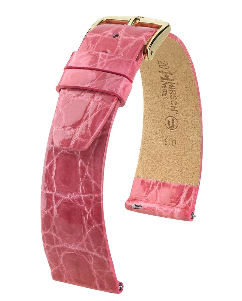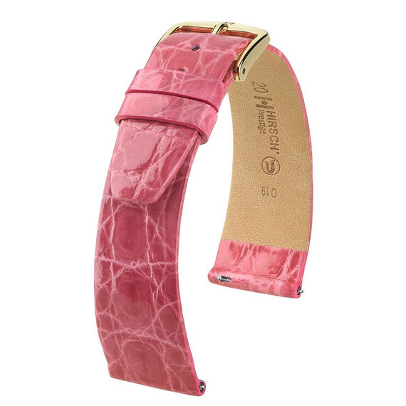 Ušlechtilý řemínek k hodinkám Hirsch Prestige , který se bude dokonale hodit k tradičním dámským i pánským hodinkám. Ručně zpracovaná krokodýlí kůže kajmana hluboce barvená v sudech. Vyznačuje se typickou povrchovou strukturou v podobě mřížky složené z větších a menších šupin. Caiman crocodilus je luxusní materiál s lesklou povrchovou úpravou. Kajman pochází z Jižní Ameriky, kde se vyskytuje v oblasti táhnoucí se mezi jižním Mexikem a severní Argentinou. Ideální nabídka pro prestižní, elegantní hodinky. Použití speciálních teleskopů umožňuje montáž a demontáž pásu bez použití nářadí. Hirsch Prestige je k dispozici ve velikostech 12 mm, 14 mm, 15 mm, 16 mm, 17 mm, 18 mm, 19 mm a 20 mm.