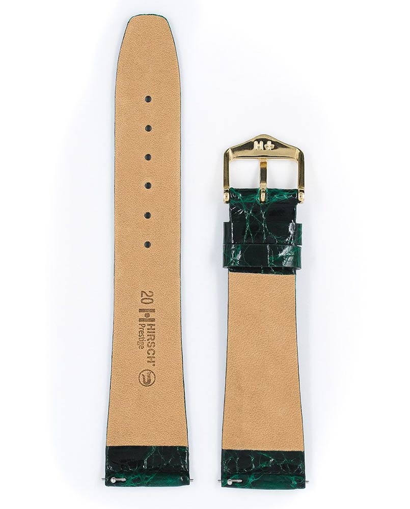Ušlechtilý řemínek k hodinkám Hirsch Prestige , který se bude dokonale hodit k tradičním dámským i pánským hodinkám. Ručně zpracovaná krokodýlí kůže kajmana hluboce barvená v sudech. Vyznačuje se typickou povrchovou strukturou v podobě mřížky složené z větších a menších šupin. Caiman crocodilus je luxusní materiál s lesklou povrchovou úpravou. Kajman pochází z Jižní Ameriky, kde se vyskytuje v oblasti táhnoucí se mezi jižním Mexikem a severní Argentinou. Ideální nabídka pro prestižní, elegantní hodinky. Použití speciálních teleskopů umožňuje montáž a demontáž pásu bez použití nářadí. Hirsch Prestige je k dispozici ve velikostech 12 mm, 14 mm, 15 mm, 16 mm, 17 mm, 18 mm, 19 mm a 20 mm.