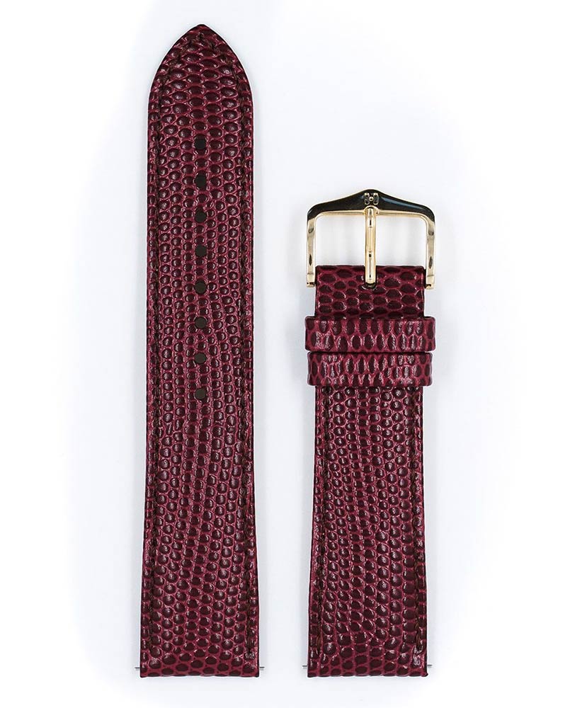 Vínový řemínek k hodinkám Hirsch Rainbow . Klasický design mistrně zpracovaný. Neuvěřitelně lehký a příjemný na nošení řemínek s ještěrčím vzorem, kterému nelze odolat. Telecí kůže s hedvábným leskem s výraznou ještěrkovitou ražbou a hustě uspořádanými, mírně vyvýšenými šupinami. Rainbow je k dispozici v klasických barvách i v jasných barvách, díky čemuž ji lze nosit s jakýmikoli pánskými i dámskými hodinkami. Použití rychlých teleskopů umožňuje nasadit opasek bez nářadí a sundat jej jedním pohybem.