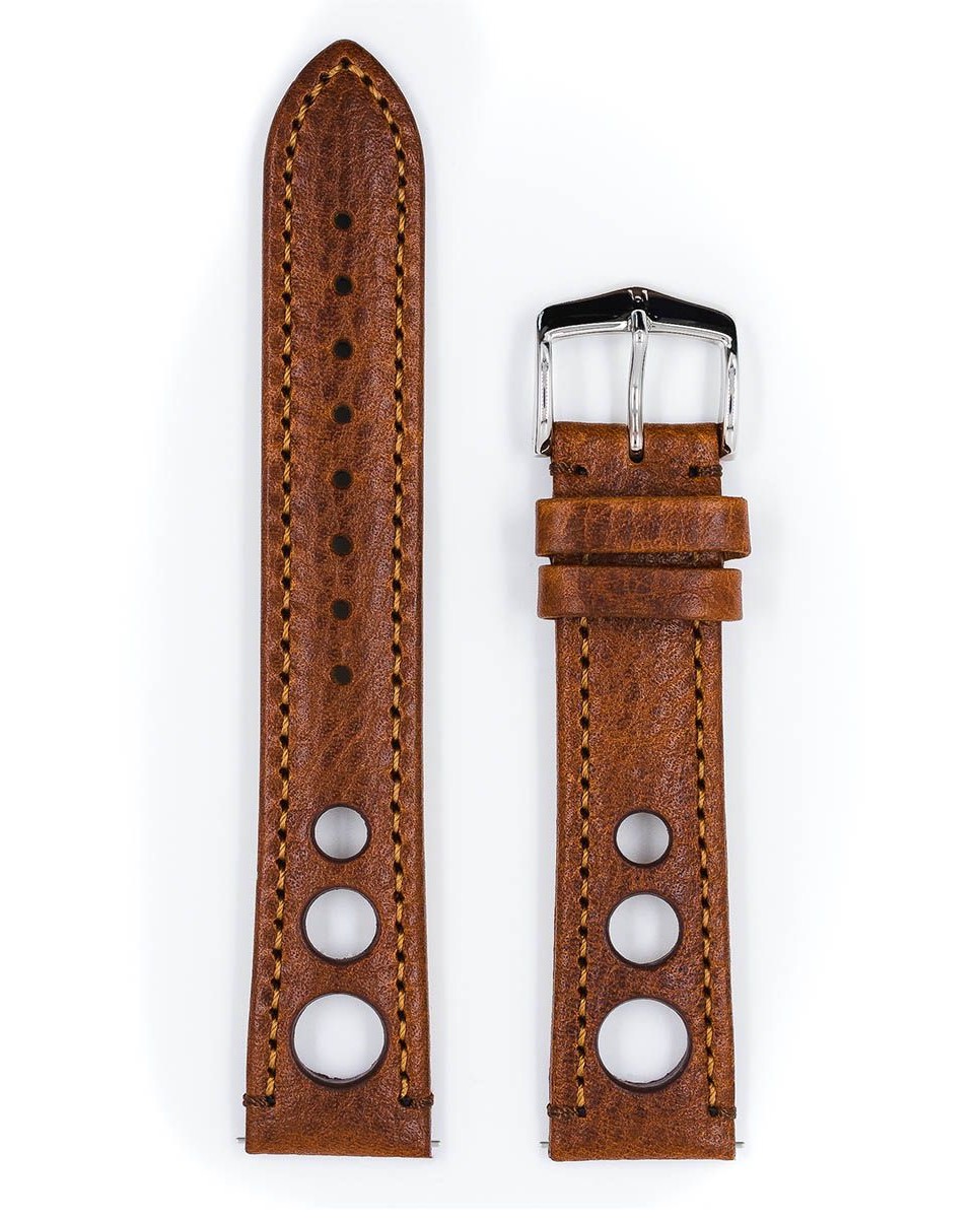 Řemínek k hodinkám Hirsch Rally 20 mm černý s červenými akcenty. Módní vintage styl inspirovaný před lety závodními rukavicemi, které měly speciální otvory, stejné jako v Rally pásu. Tyto otvory umožňují ruce dýchat, například v horkých dnech. Ručně dělaný šev u přezky a u patky hodinek, třikrát ručně lakované okraje. Vysoce kvalitní spona z nerezové oceli.