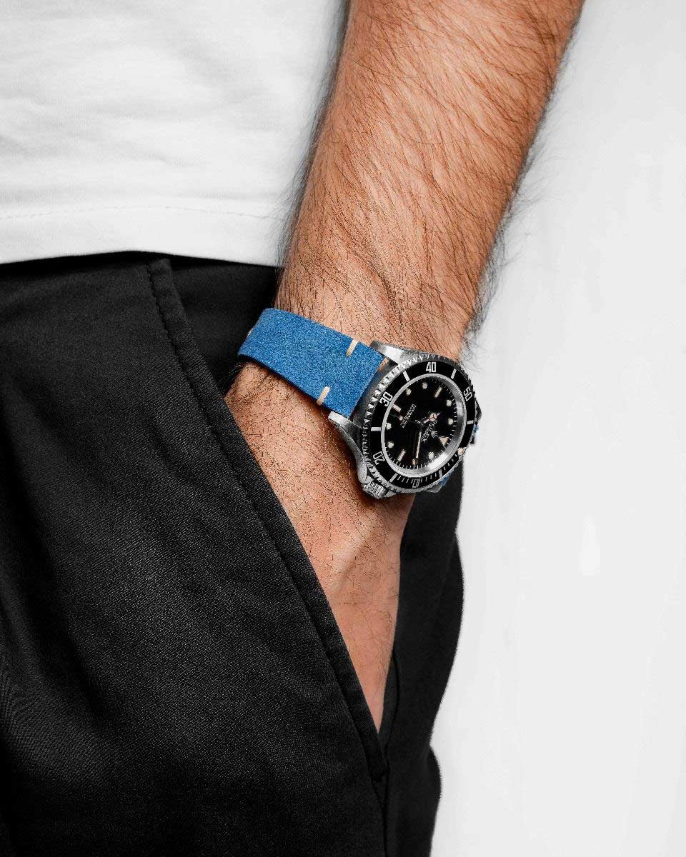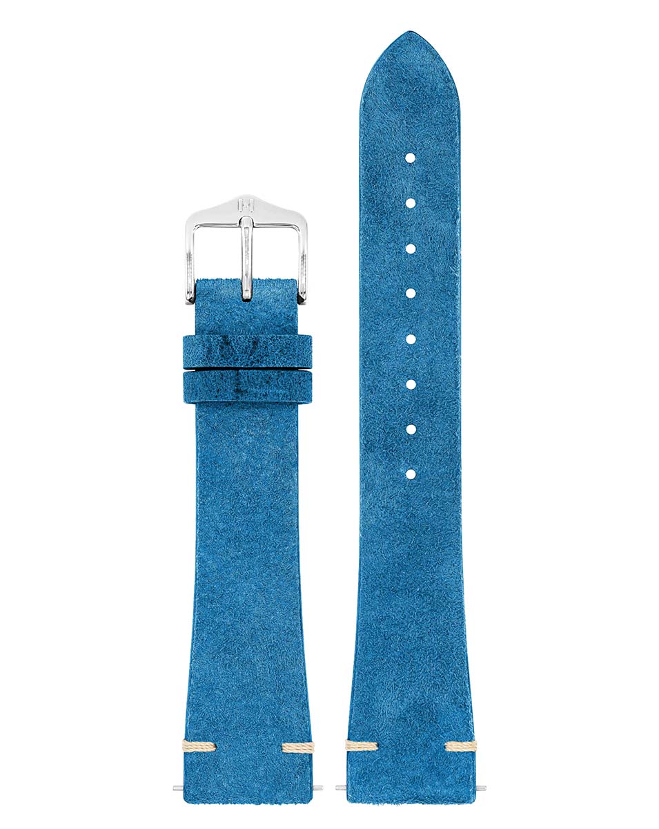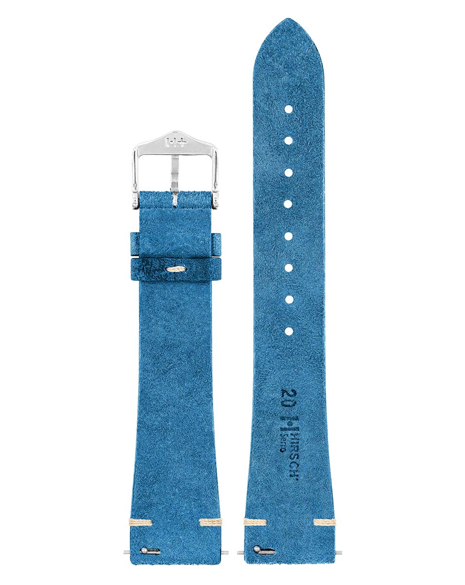 Užijte si bezkonkurenční měkkost s řemínkem k hodinkám Hirsch Serro. Vykročte do světa luxusu s modrým páskem ze sametově jemné semišové kůže jihoafrické antilopy Kudu. Plyšová textura a jedinečná patina. Surový povrch kůže časem zraje a vytváří výraznou patinu, díky které je váš kousek jedinečný. Neustále se měnící patina dodá hodinkám luxusní kouzlo a jedinečný styl. Hirsch Serro je citlivý na vlhkost, proto jej chraňte před vodou a bude vypadat zářivě navždy.