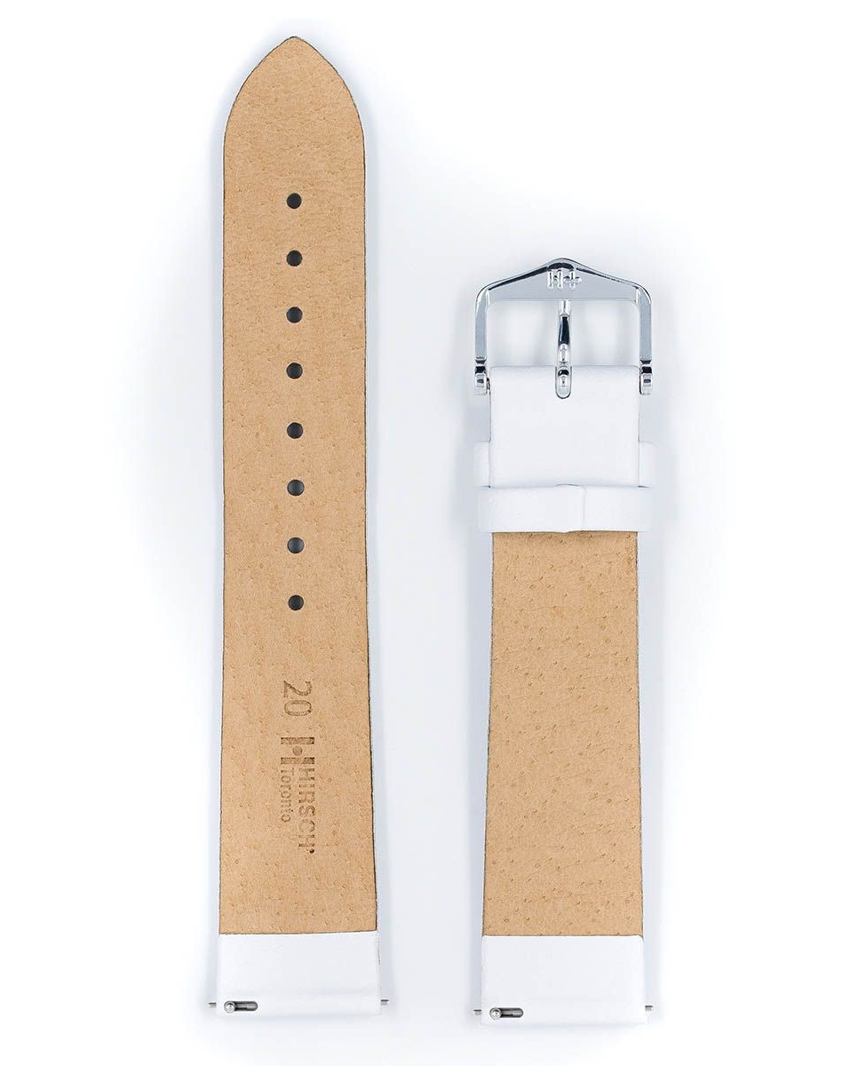 Zvenku odolný, uvnitř měkký – to je motto modelu Hirsch Toronto . Decentní a elegantní dámský řemínek k hodinkám v bílé barvě, v místě uchycení k hodinkám široký 16 mm. Italská teletina s výjimečně jemnou texturou se perfektně hodí k elegantním klasickým hodinkám. Quick-Release System umožňuje montáž bez dalších teleskopů. Teleskopický prvek vyčnívající zespodu stačí posunout tak, abyste mohli popruh zasunout do pouzdra a nasadit bez použití nářadí.