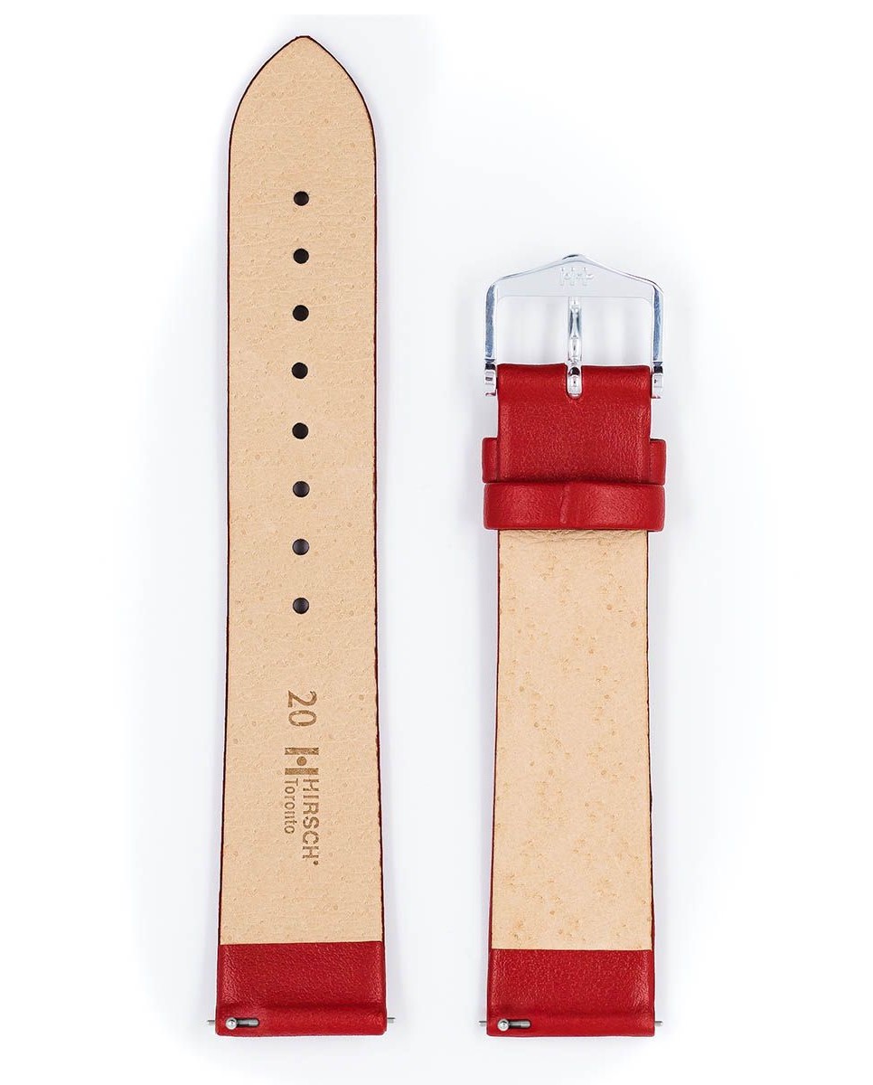 Zvenku odolný, uvnitř měkký – to je motto modelu Hirsch Toronto . Decentní a elegantní dámský řemínek k hodinkám v červené barvě, v místě uchycení k hodinkám široký 16 mm. Italská teletina s výjimečně jemnou texturou se perfektně hodí k elegantním klasickým hodinkám. Quick-Release System umožňuje montáž bez dalších teleskopů. Teleskopický prvek vyčnívající zespodu stačí posunout tak, abyste mohli popruh zasunout do pouzdra a nasadit bez použití nářadí.