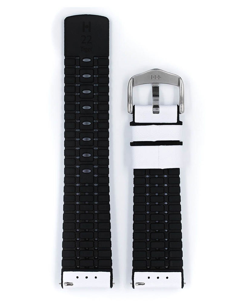 Bílý řemínek k hodinkám Hirsch Tiger . Na spodní straně je řemínek vyroben z nejkvalitnější pryže Hirsch Premium Caoutchouc , která zajišťuje voděodolnost. Speciálně navržené drážky odvádějí vodu a vlhkost pro bezkonkurenční pohodlí při nošení. Správná volba pro každou příležitost. Esteticky krásný, hedvábně měkký a zároveň extrémně funkční řemínek sportovních hodinek vyrobený z odolné vrchní kůže se sportovním kontrastním závitem. Perfektní společník pro každodenní i sportovní aktivity. Tiger je vybaven speciálními teleskopy, které umožňují montáž bez nářadí.