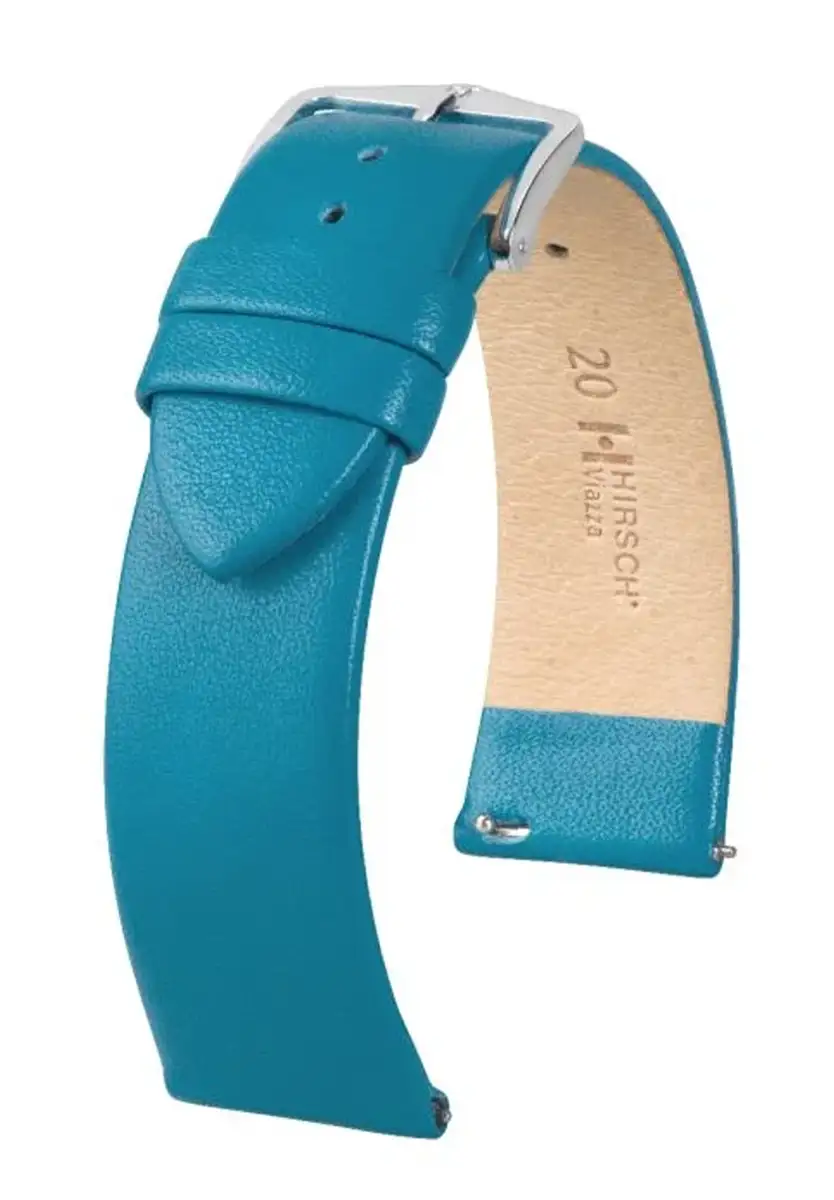 Řemínek k hodinkám Hirsch Viazza v barvě petrol je návrhem pro ženy, které hledají výrazný, a zároveň ušlechtilý doplněk ke svému šatníku. Vyrobený z hladké, přírodní kůže se vyznačuje hlubokým mořským odstínem, který představuje stylovou alternativu ke klasické černé či hnědé. Minimalistická forma bez zbytečného ražení zajišťuje, že se řemínek dokonale kombinuje s moderními bižuterními hodinkami i modely typu fashion a dodává jim svěžest a luxusní charakter.