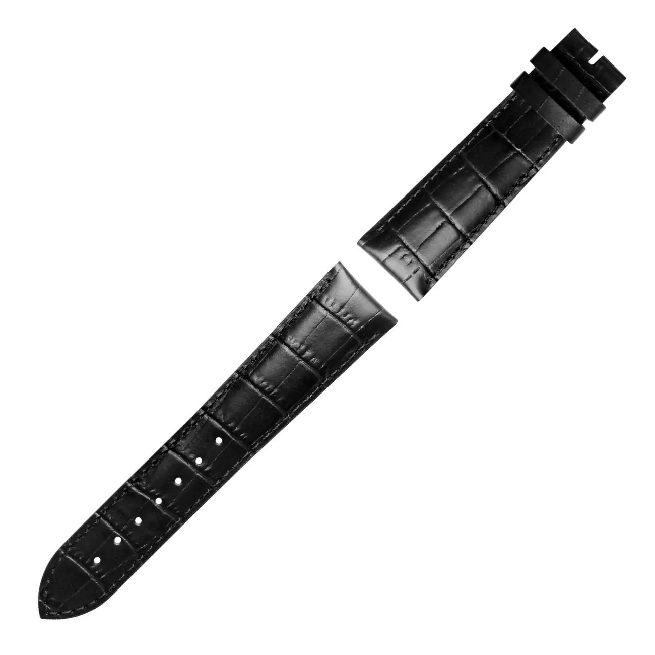 Řemínek Longines DolceVita, černý je vyroben z přírodní kůže s výrazným aligátořím vzorem. Černý odstín a ladící prošití podtrhují jeho elegantní charakter, který dokonale ladí s hodinkami Longines z kolekce DolceVita. Řemínek je dostupný v několika šířkách a hodí se také k jiným modelům Longines, pokud odpovídá šířka uchycení u pouzdra. Prodává se bez spony – přezku nebo motýlkové zapínání Longines je možné dokoupit samostatně v sekci „Doporučujeme dokoupit“.