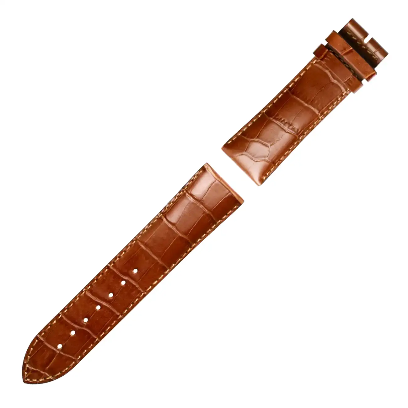Řemínek Longines DolceVita, zlatohnědý je vyroben z přírodní kůže s výrazným aligátořím vzorem. Zlatý odstín a ladící prošití podtrhují jeho elegantní charakter, který dokonale ladí s hodinkami Longines z kolekce DolceVita. Řemínek je dostupný v několika šířkách a hodí se také k jiným modelům Longines, pokud odpovídá šířka uchycení u pouzdra. Prodává se bez spony – přezku nebo motýlkové zapínání Longines je možné dokoupit samostatně v sekci „Doporučujeme dokoupit“.