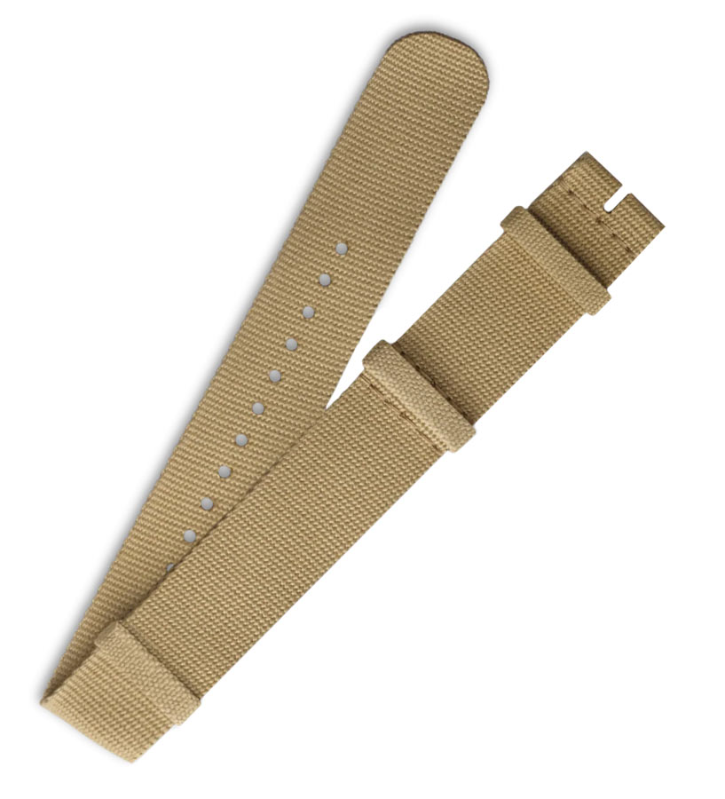 Originální opasek Longines NATO bez spony a přezky. Vyrobeno z béžového textilního materiálu. Řemínek NATO určený pro pánské, sportovní nebo vojenské hodinky se skvěle hodí do horkých letních dnů, neabsorbuje vlhkost jako kožený řemínek, je lehký a příjemný na nošení. Dostupné velikosti koženého řemínku NATO: 19, 20, 21 nebo 22 mm . Celková délka popruhu je 313 mm.