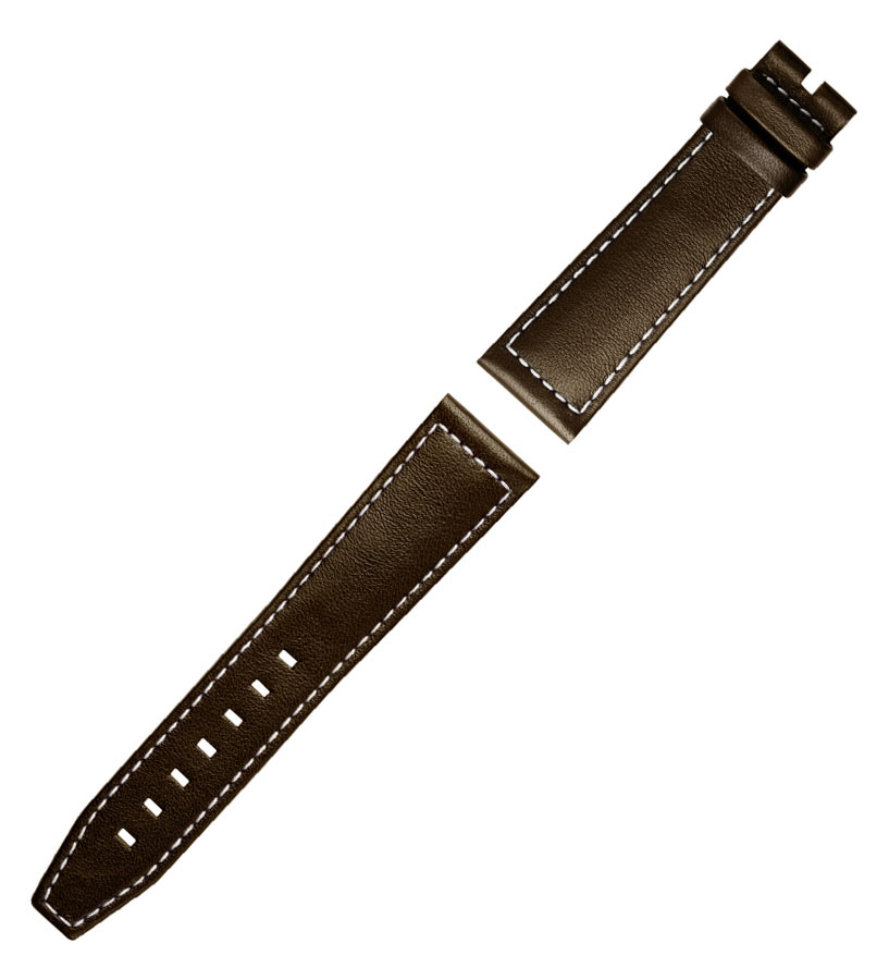 Originální řemínek bez spony a přezek na hodinky Longines v hnědé barvě. Vyrobeno z teletiny s matným povrchem. Bílé prošívání a široké otvory pro přezku z matné oceli dodávají sportovní charakter. Věnováno kolekci Spirit a dalším sportovním hodinkám švýcarské značky Longines.