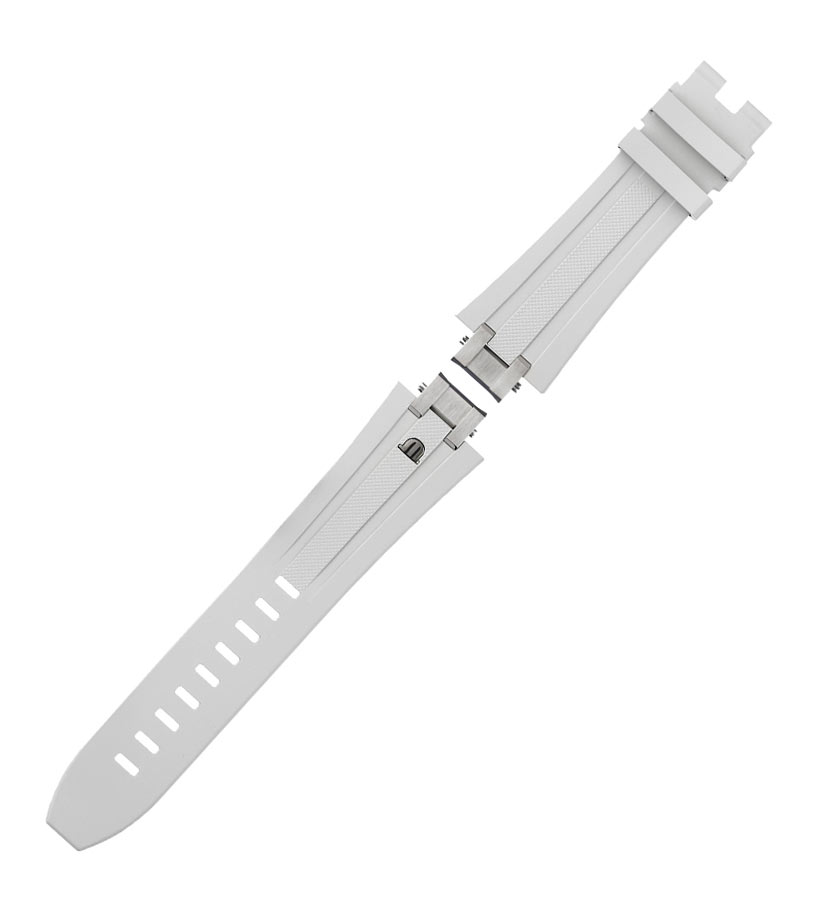 Originální řemínek bez zapínání na hodinky Maurice Lacroix Aikon Automatic s průměrem pouzdra 42 mm. Vyrobeno z vysoce kvalitní bílé gumy. Ozdobné logo "M" ve stříbrné barvě, integrované s páskem, dává pocit soudržnosti a luxusu. Řemínek je věnován pouze kolekci Aikon Automatic, jejíž hodinky mají servisní číslo na zadní straně pouzdra, ze spodní části hodinek AI6008. Použití speciálního spojovacího prvku, který usnadňuje výměnu, je skutečnou přidanou hodnotou opasku. Sponu lze zakoupit v odpovídajících produktech níže.