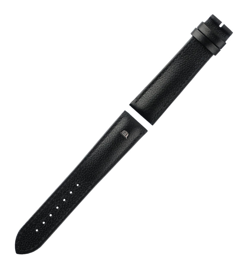 Elegantní, černý řemínek na dámské hodinky z kolekce Maurice Lacroix Eliros Date Ladies. Hladký vzor, prošitý nití v barvě proužku. Spona je vyrobena z nerezové oceli ve stříbrné barvě, leštěná do vysokého lesku. Ve stejné barvě je logo značky, ozdobné „M“ integrované na pásku, které dodává konzistenci a pocit luxusu. Díky použití teleskopů EasyChange nebudete potřebovat nářadí ani pomoc hodináře. Vespod jsou speciální výstupky, které stačí posunout pro nasazení nebo sundání popruhu. Sada, řemínek plus přezka, je věnována kolekci Eliros, jejíž hodinky mají servisní číslo na zadní straně pouzdra, ze spodní části hodinek EL1094 . Řemínek nemá neobvyklý způsob uchycení k pouzdru, takže bude pasovat i na další modely Maurice Lacroix, které lze použít s řemínkem o šířce 16 mm.