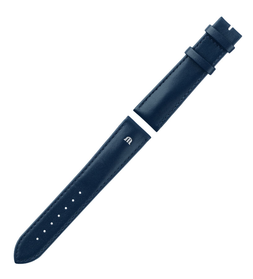 Elegantní modrý řemínek na dámské hodinky z kolekce Maurice Lacroix Eliros Date Ladies. Hladký vzor, prošitý nití v barvě proužku. Spona je vyrobena z nerezové oceli ve stříbrné barvě, leštěná do vysokého lesku. Ve stejné barvě je logo značky, ozdobné „M“ integrované na pásku, které dodává konzistenci a pocit luxusu. Díky použití teleskopů EasyChange nebudete potřebovat nářadí ani pomoc hodináře. Vespod jsou speciální výstupky, které stačí posunout pro nasazení nebo sundání popruhu. Sada, řemínek plus přezka, je věnována kolekci Eliros, jejíž hodinky mají servisní číslo na zadní straně pouzdra, ze spodní části hodinek EL1094 . Řemínek nemá neobvyklý způsob uchycení k pouzdru, takže bude pasovat i na další modely Maurice Lacroix, které lze použít s řemínkem o šířce 16 mm.