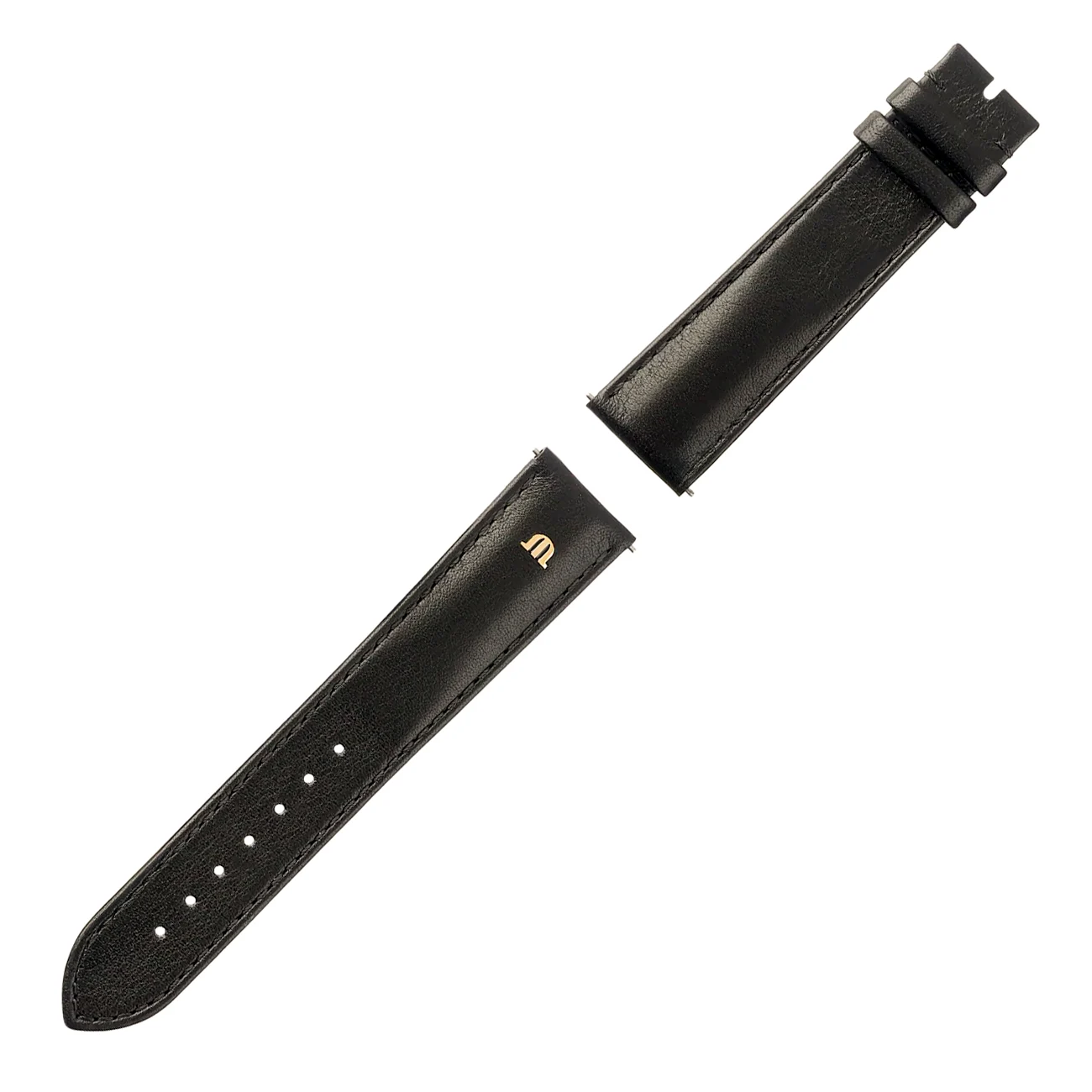 Elegantní černý řemínek bez přezky pro pánské hodinky z kolekce Maurice Lacroix Eliros. Vyrobený z vysoce kvalitní přírodní kůže s hladkou strukturou a prošíváním v barvě řemínku. Jemný lesk podtrhuje luxusní charakter, zatímco integrované logo značky – ozdobné písmeno M ve zlatém odstínu – dodává celku prestiž a vytříbený styl.