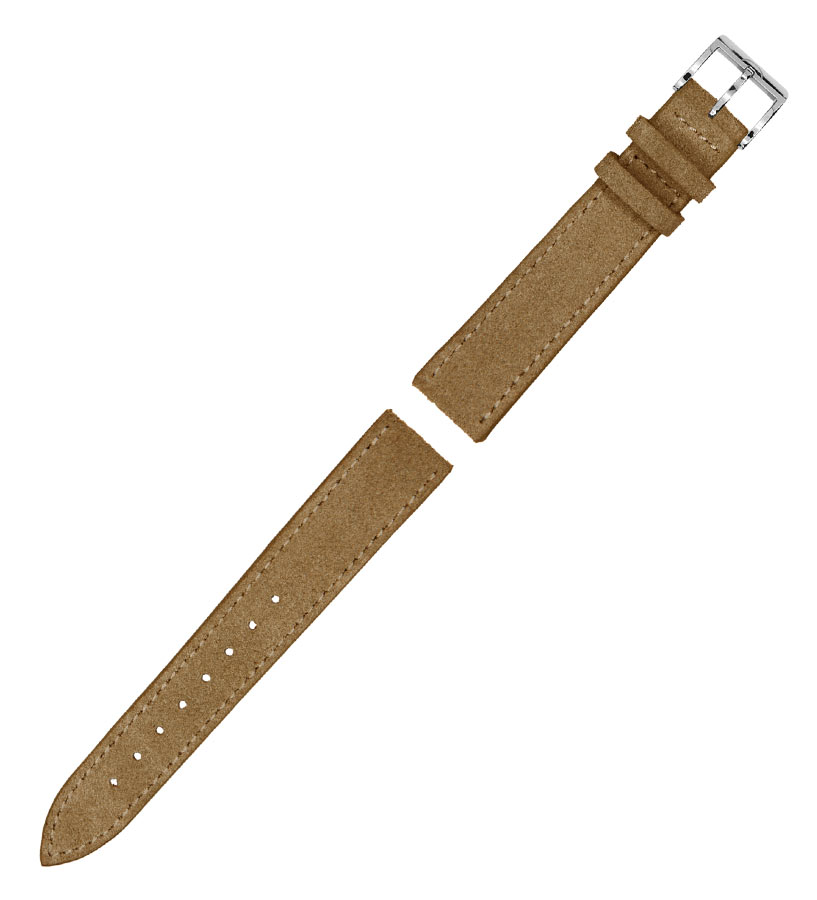 Originální řemínek k hodinkám MeisterSinger. Vyrobeno z měkké, extrémně příjemné na nošení, semišové teletiny ve zlatohnědé, pískové barvě. Zakončeno sponou z vysoce lesklé oceli s logem značky.