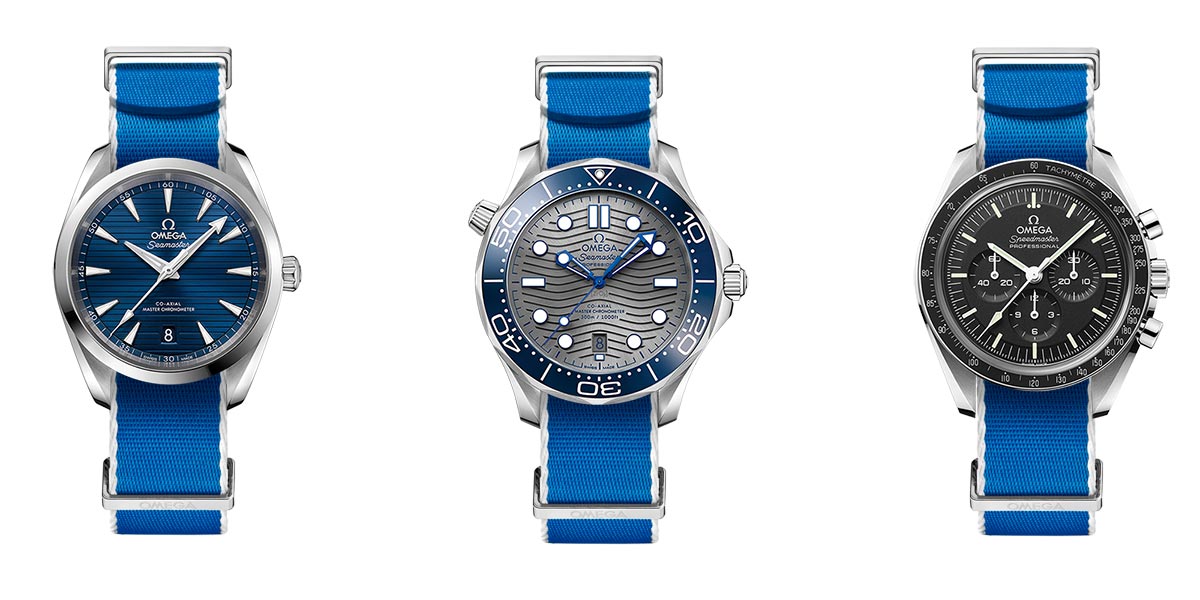 Originální řemínek ve stylu NATO pro hodinky Omega. Vyrobeno z polyamidu, měkkého a pohodlného plastu, který je velmi odolný a voděodolný. Modrá barva s bílými boky skvěle ladí se sportovními modely Omega Speedmaster nebo Omega Seamaster . Vysoce leštěná poutka na opasek z nerezové oceli a spona Omega. Pásek o šířce např. 20 mm se dle specifikace výrobce vejde i s roztečí 19 mm, lze je tedy nastavit až na čtyři šířky: 19 mm, 20 mm, 21 mm a 22 mm. Celková délka 313 mm. Ideální na jaro a léto, změňte charakter svých hodinek Omega a užijte si pohodlí při jejich nošení.