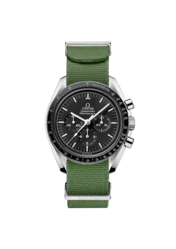 Originální řemínek OMEGA NATO pro hodinky Omega. Vyrobeno z polyamidu, plastu, který je velmi odolný a voděodolný. Zelená barva dokonale ladí s Omega Speedmaster a Omega Seamaster . Lesklá nerezová poutka a spona Omega. Podle specifikace výrobce se do rozteče 19 mm vejde i pásek o šířce např. 20 mm, lze je tedy upravit na čtyři šířky: 19 mm, 20 mm a 21 mm, 22 mm. Celková délka 313 mm. Perfektní nabídka na jaro a léto, změňte charakter svých hodinek Omega a užijte si pohodlí při jejich nošení.