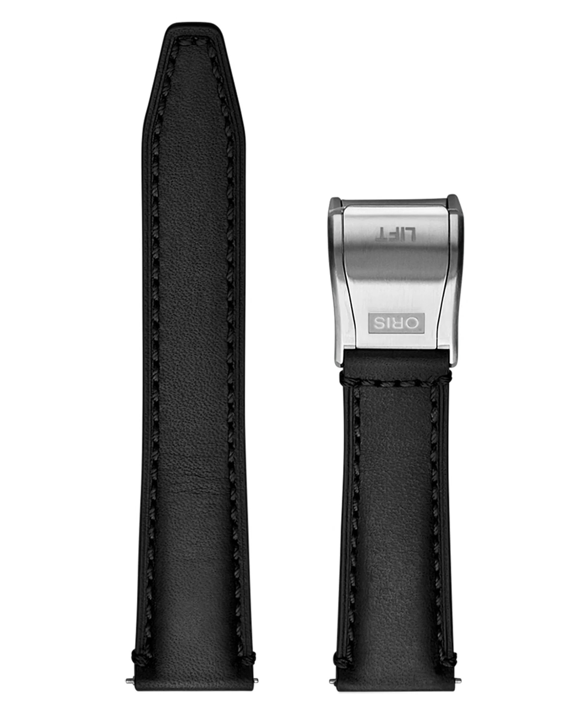 Řemínek Oris 07 6 20 08NB je originální příslušenství určené pro hodinky z kolekce Big Crown ProPilot Date 41 mm, jejichž reference začíná číslem 01 751 7761. Vyrobený je z vysoce kvalitní přírodní kůže v černé barvě, prošitý nití ve shodném odstínu, což podtrhuje jeho jednotný a profesionální charakter.