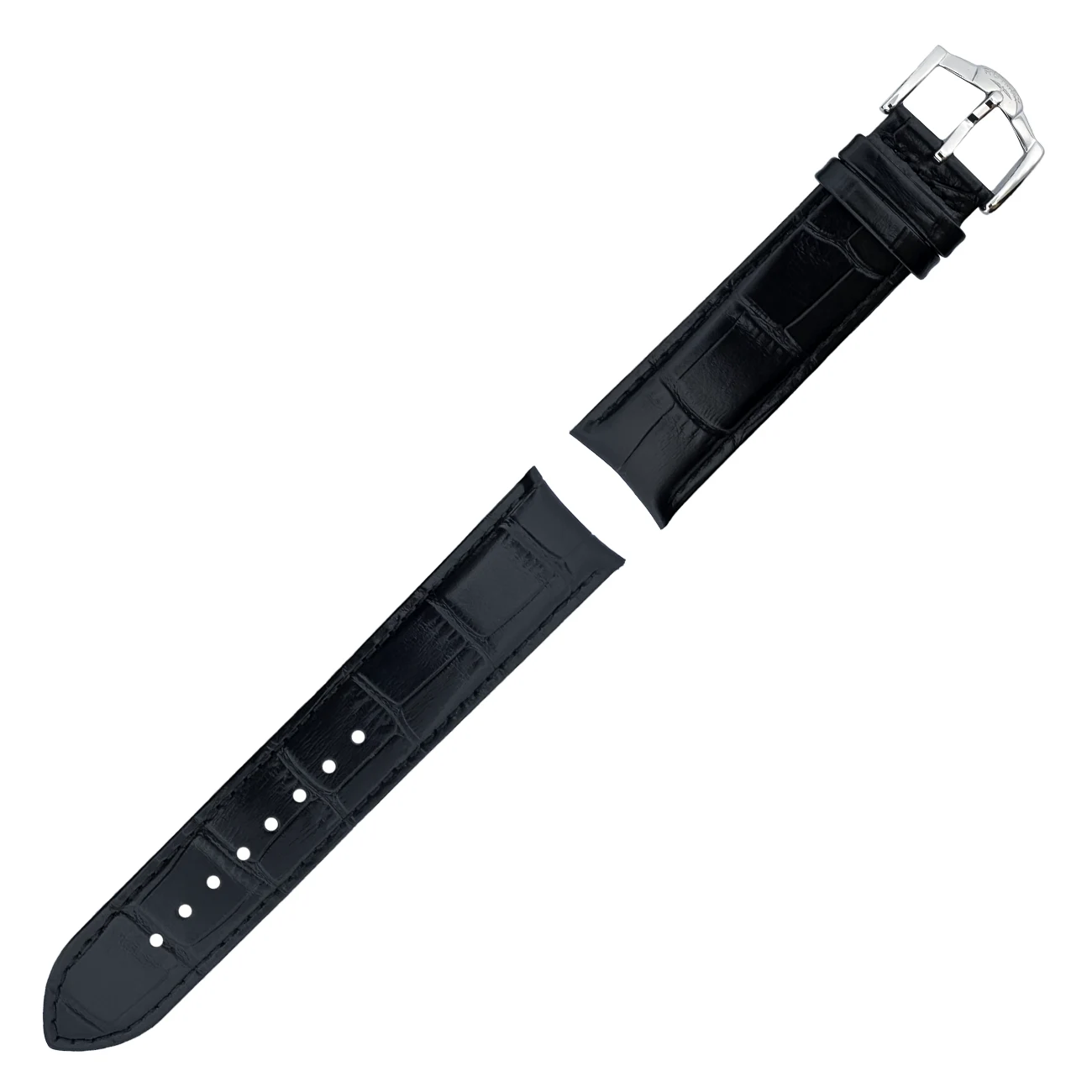 Řemínek Rotary GS05380 je originální příslušenství o šířce 21 mm, vyrobené z černé přírodní kůže s elegantním krokodýlím vzorem. Lesklá povrchová úprava dodává hodinkám nádech klasiky a ocelová spona s logem značky Rotary podtrhuje jejich autentický charakter. Řemínek je speciálně tvarován, což zajišťuje dokonalé přizpůsobení pouzdru a pohodlí při nošení.