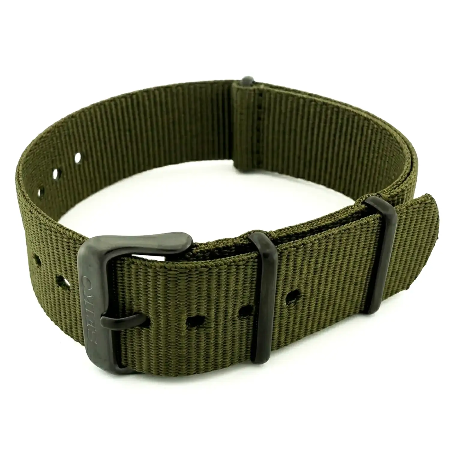 Klíčovým rozlišovacím znakem tohoto modelu jsou černé matné kování, které celku dodává profesionální šmrnc. Tento originální řemínek k hodinkám Seiko byl navržen s ohledem na plnou odolnost vůči vnějším vlivům – od vlhkosti přes pot až po UV záření, což zabraňuje blednutí barvy khaki. Textilní materiál NATO Seiko je v této verzi mimořádně hladký při kontaktu s pokožkou, což eliminuje riziko podráždění během mnohahodinového nošení. Smysl pro detail je patrný v precizně vyříznutých otvorech a sponě s logotypem, která podtrhuje autenticitu japonského designu.