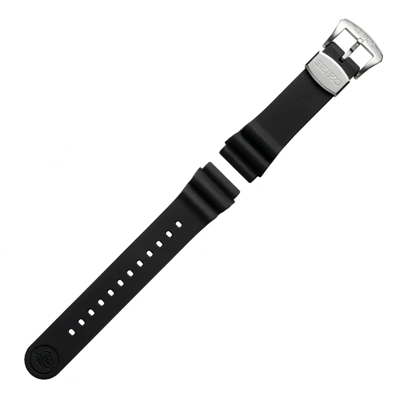 Tento černý, plně voděodolný řemínek z řady Seiko Prospex je vyroben z pryže se zvýšenou hustotou, která zůstává měkká na zápěstí a zároveň odolává působení slané vody a UV záření. Vybavení robustní ocelovou sponou a širokým kovovým poutkem s hlubokým gravírováním SEIKO zaručuje, že hodinky zůstanou na svém místě i během dynamického plavání. Originální řemínek k hodinkám Seiko tohoto typu je nezbytným prvkem výbavy pro každého potápěče, zajišťující autentický vzhled a bezpečnost mechanismu pod vodou.