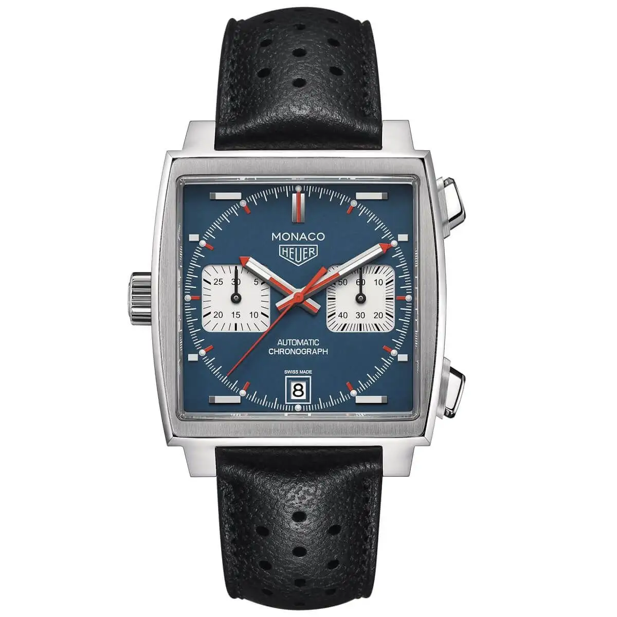 Řemínek je vyroben z přírodní kůže v černé barvě, s charakteristickými otvory typu rally. Toto řešení není pouze estetické. Otvory zlepšují ventilaci zápěstí a odkazují na klasické závodní řemínky používané u hodinek inspirovaných automobilismem. Struktura kůže je hmatatelná na dotek a dobře ladí se sportovním charakterem modelu Monaco.