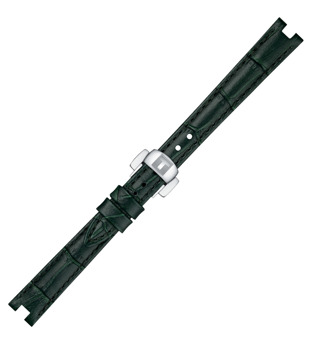Originální řemínek s motýlkovou sponou pro hodinky Tissot Bellissima. Elegantní Tissot T600049238 z přírodní zelené kůže se vzorem aligátora. Určeno pouze pro modely Bellissima se servisním číslem na krytu T126010. Sada obsahuje objímky a čepy nutné pro montáž.