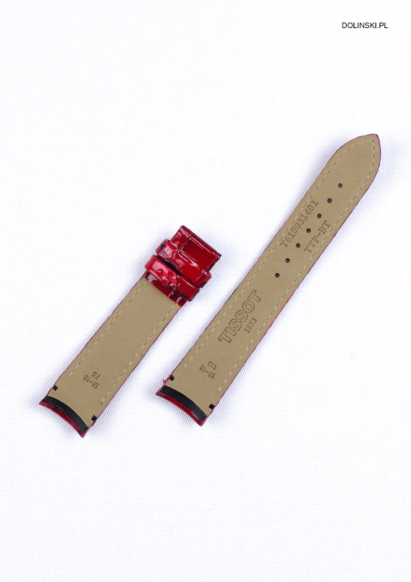 Originální řemínek k hodinkám Tissot Couturier Lady. Elegantní, dámské Tissot T610031401 věnované motýlkové sponě. Vyrobeno z přírodní, lesklé červené kůže s texturou aligátora. Určeno pro model Couturier Lady se servisním číslem na krytu T035210. Opasek se prodává samostatně, bez motýlkové spony, pokud si jej chcete zakoupit, vyberte si možnost z odpovídajících produktů.