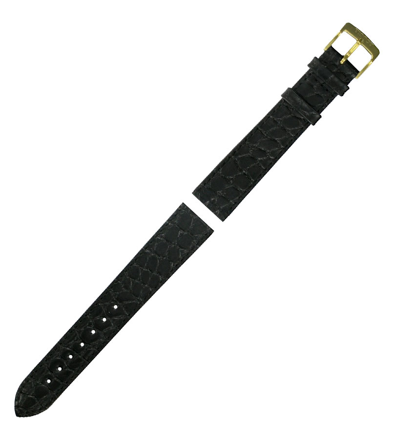 Řemínek z pravé kůže Tissot T600013358 v černé barvě s elegantním a klasickým vzhledem. S krokodýlí texturou se skvěle hodí ke zlatým hodinkám Tissot Goldrun, ale i k dalším modelům, které lze osadit páskem o šířce 18 mm . Spona z nerezové oceli, zlacená žlutým zlatem, má čirý nápis Tissot.