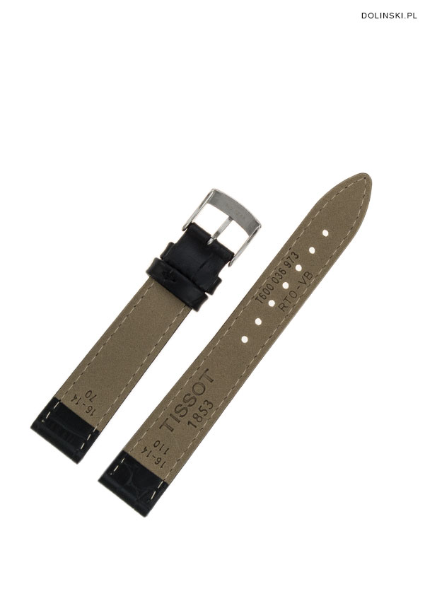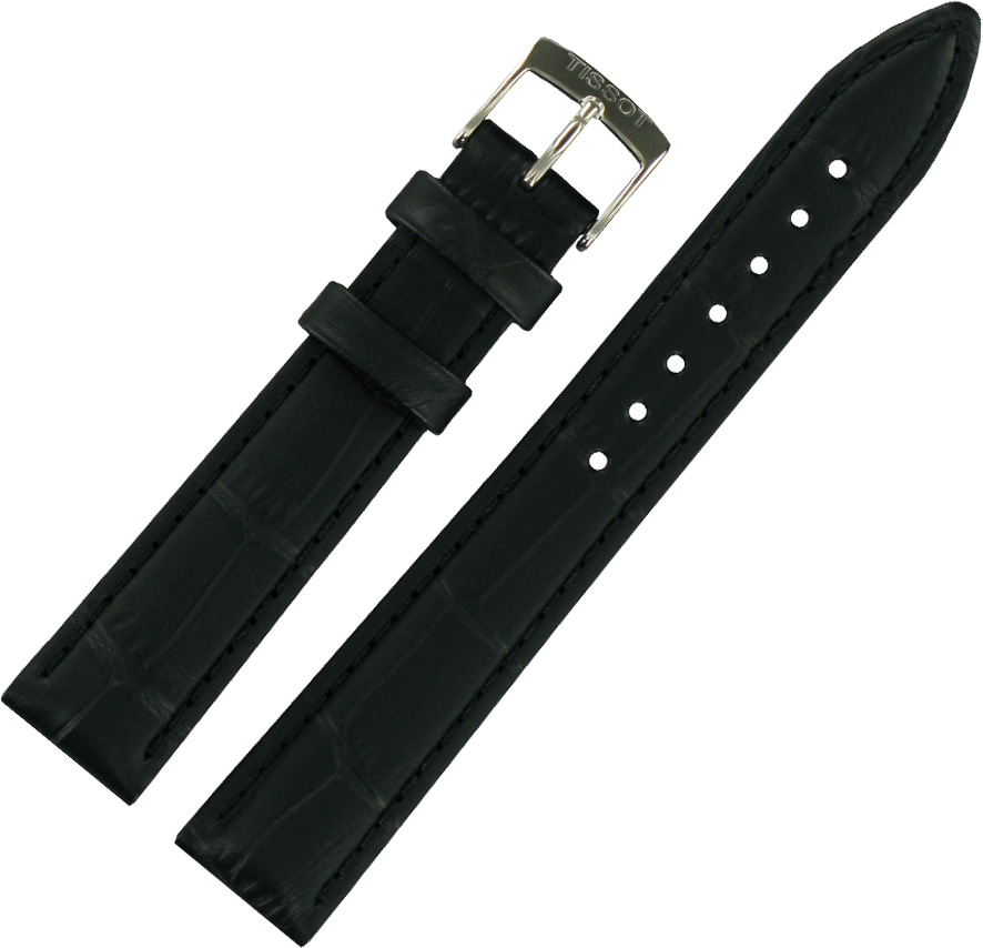 Originální řemínek k dámským hodinkám Tissot PR 100 Lady. Vyrobeno z přírodní kůže Tissot T600036973 v černé barvě. Určeno pro hodinky Tissot PR 100 Lady se servisním číslem na pouzdru T101251, T101210, ale i pro ostatní modely, které lze osadit páskem o šířce 16 mm. Přezka je vyrobena z nerezové oceli a má čirý nápis Tissot.