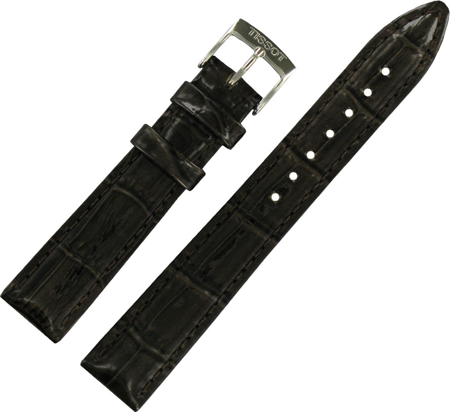 Originální řemínek k dámským hodinkám Tissot PR 100 Lady. Vyrobeno z přírodní kůže, lesklý Tissot T600036975 v hnědé barvě. Určeno pro hodinky Tissot PR 100 Lady se servisním číslem na pouzdru T101207, T101251, T101210, ale i pro ostatní modely, které lze osadit páskem o šířce 16 mm. Přezka je vyrobena z nerezové oceli a má čirý nápis Tissot.