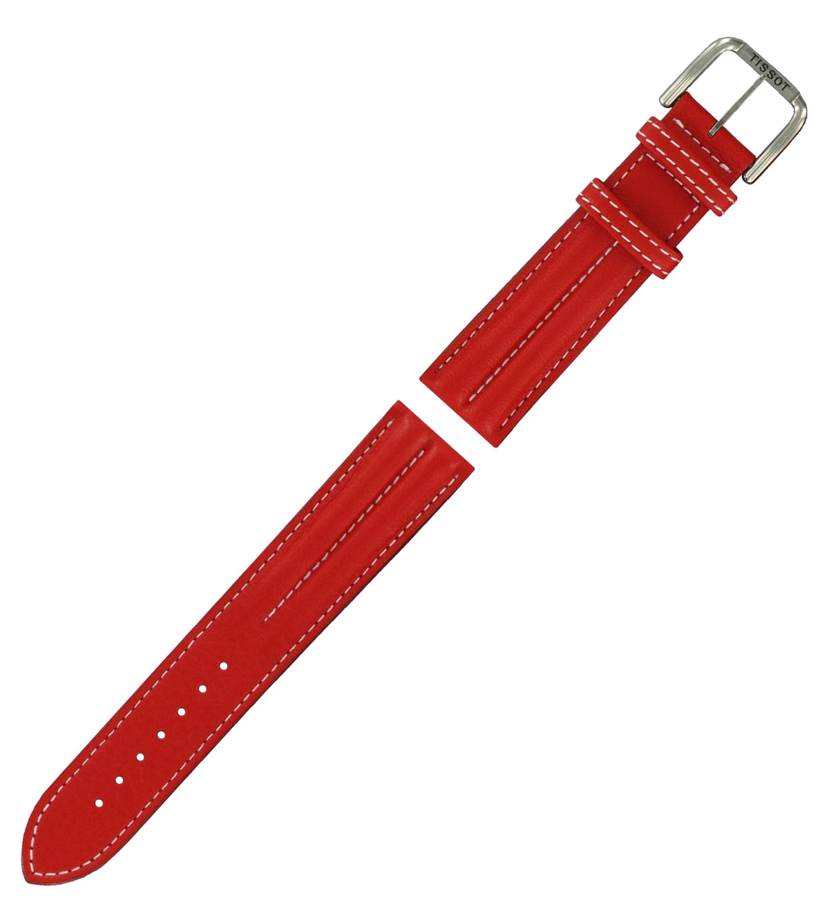 Originální řemínek k hodinkám Tissot. Vyrobeno z přírodní kůže Tissot T600013631 v červené barvě s bílým prošíváním. Skvěle se hodí ke sportovním hodinkám Tissot, které lze osadit páskem o šířce 20 mm. Spona z nerezové oceli.