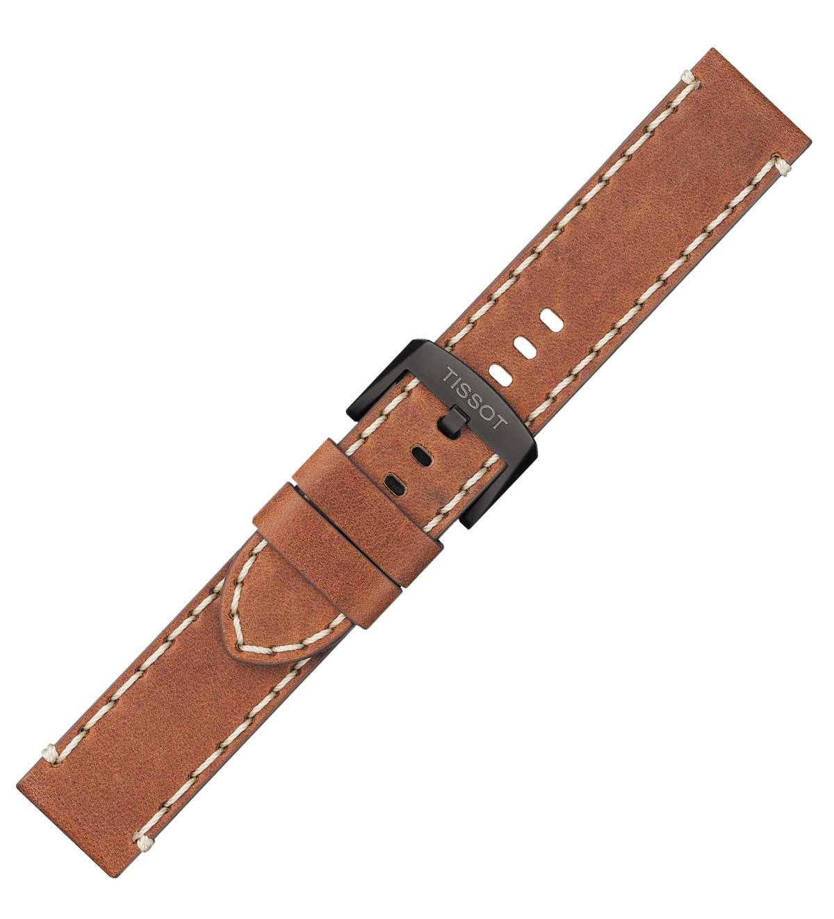 Originální řemínek pro hodinky Tissot Chrono XL a Gent XL. Vyrobeno z přírodní kůže Tissot T600043493 ve světle hnědé barvě s bílou nití, která dodává sportovní charakter všem hodinkám. Skvěle se hodí ke sportovním hodinkám Tissot, které lze osadit páskem o šířce 22 mm. Spona z nerezové oceli, potažená černým PVD, s čirým nápisem Tissot.