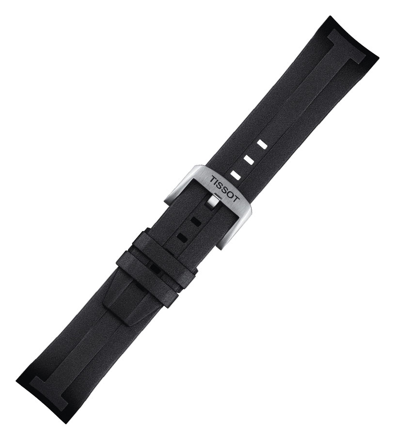 Vodotěsný gumový řemínek Tissot T603046865 pro hodinky Seastar 2000 Professional Automatic. Věnováno pouze modelům Seastar 2000 se servisním číslem T120607 viditelným na spodní straně hodinek. Šířka 22 mm, zakončeno ocelovou přezkou s nápisem Tissot.
