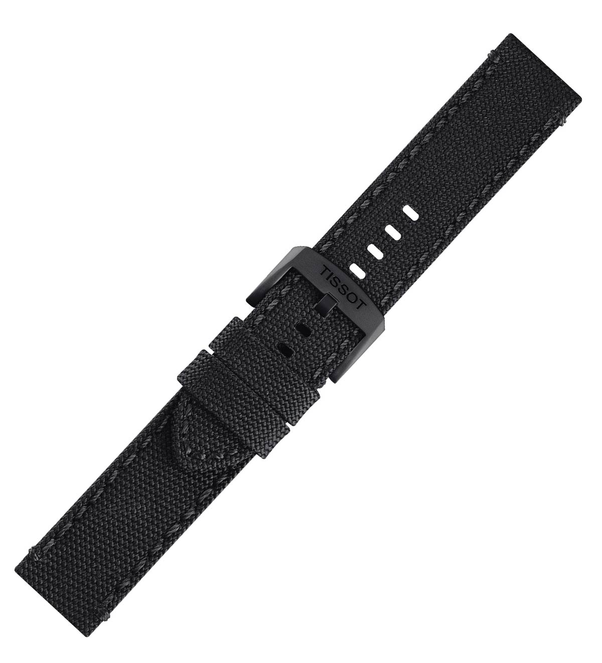 Originální řemínek k hodinkám Tissot Chrono XL. Vyrobeno z černého textilního materiálu Tissot T604044936, který dodává sportovní charakter všem hodinkám. Skvěle se hodí ke sportovním hodinkám Tissot, které lze osadit páskem o šířce 22 mm. Spona z nerezové oceli, potažená černým PVD, s čirým nápisem Tissot.