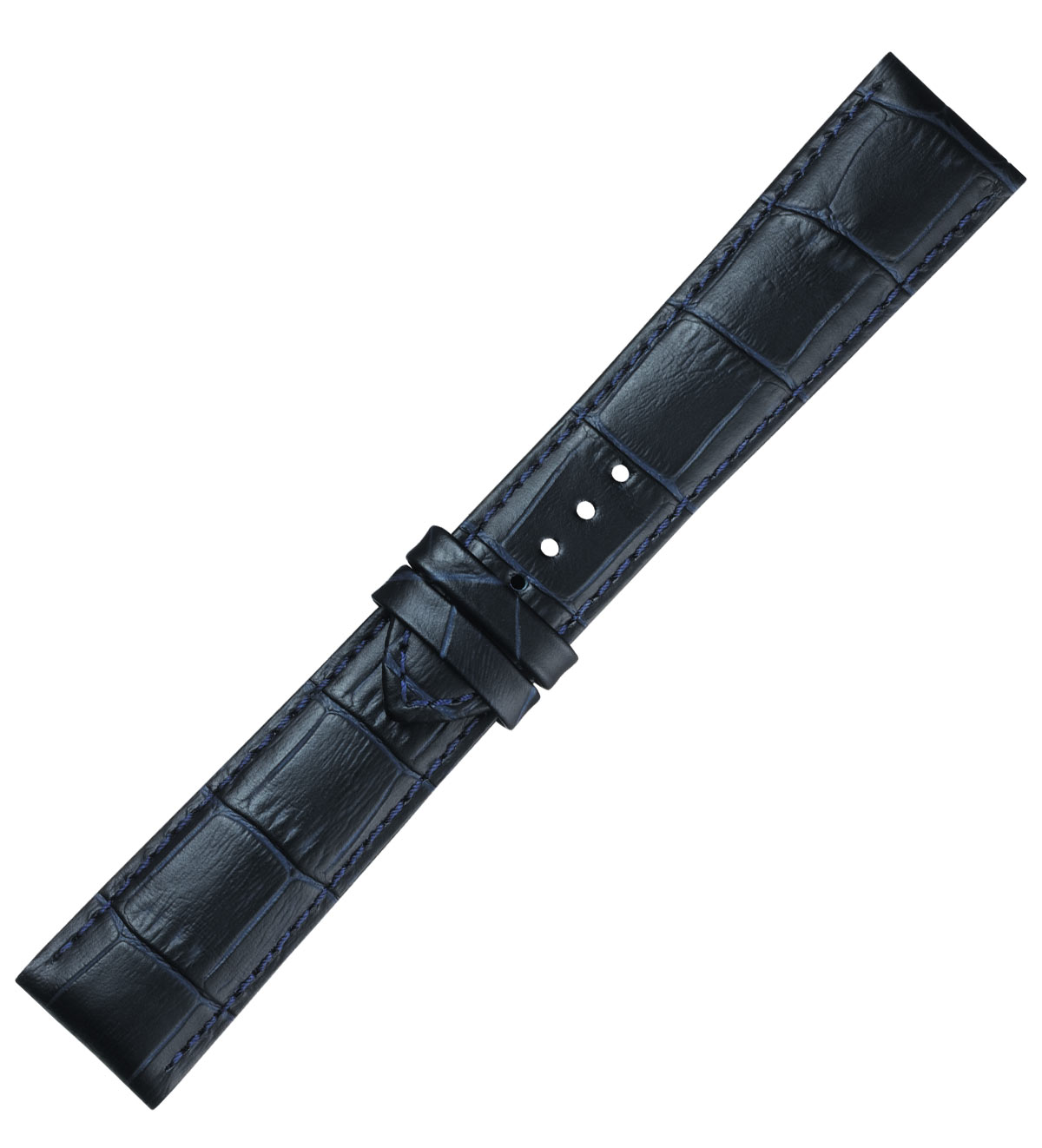 Originální řemínek Tissot T610041859 pro pánské hodinky, kompatibilní s motýlkovou sponou. Řemínek je po připevnění k pouzdru široký 21 mm a u spony se zužuje na 18 mm. Vyrobeno z vysoce kvalitní, modré přírodní kůže se vzorem aligátora.