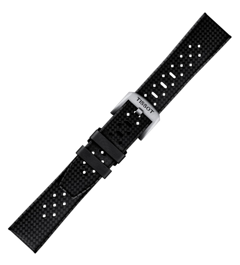 Originální voděodolný řemínek T852.049.628, šířka 20 mm, pro hodinky Tissot. Vyrobeno z černé gumy. Ocelová přezka zdobená logem značky. Řemínek je vybaven speciálními teleskopy s rychlovýměnným systémem, který umožňuje instalaci bez použití hodinářského nářadí. Řemínek Tissot je ideální pro sportovní i klasické hodinky. řemínek se prodává v sadě se zařízením na stahování klasických pásů.