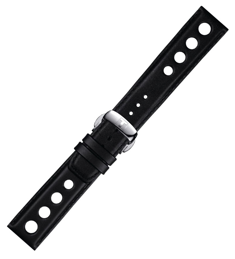 Originální řemínek T852.037.163 široký 20 mm pro hodinky Tissot. Vyrobeno z černé hovězí kůže s otvory. Řemínek je vybaven bezpečnou, ocelovou motýlkovou sponou otevíranou tlačítky a speciálními teleskopy s rychlovýměnným systémem, který umožňuje montáž bez použití hodinářského nářadí. Řemínek je věnován také modelu Tissot PRS 516 se servisním číslem T100417, T100430 nebo T100428 umístěným na zadní straně pouzdra ze spodní části hodinek. řemínek se prodává v sadě se zařízením na stahování klasických pásů.