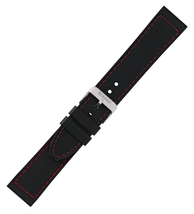 Originální gumový řemínek Traser 105724 v černé barvě s červeným prošíváním. Věnováno modelům P49 Red Alert T100 a P66 Red Combat , ale bude pasovat i na další hodinky Traser, kde můžete nosit řemínek o šířce 22 mm. Měkký, pohodlný na nošení a především voděodolný, dokonalý společník pro průzkum pod vodou. Zakončeno ocelovou přezkou, sada obsahuje teleskopy pro upevnění popruhu.
