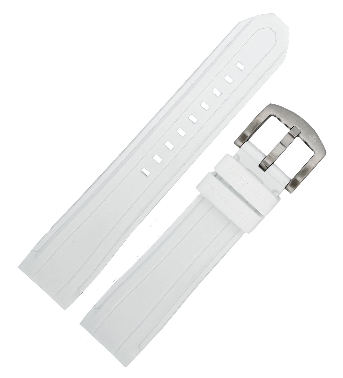 Originální gumový pásek Venezianico v elegantní bílé barvě je perfektním řešením pro lidi, kteří oceňují pohodlí, odolnost a moderní design. Díky šířce 22 mm se řemínek perfektně hodí k většině modelů hodinek Venezianico a zdůrazňuje jejich jedinečný styl.