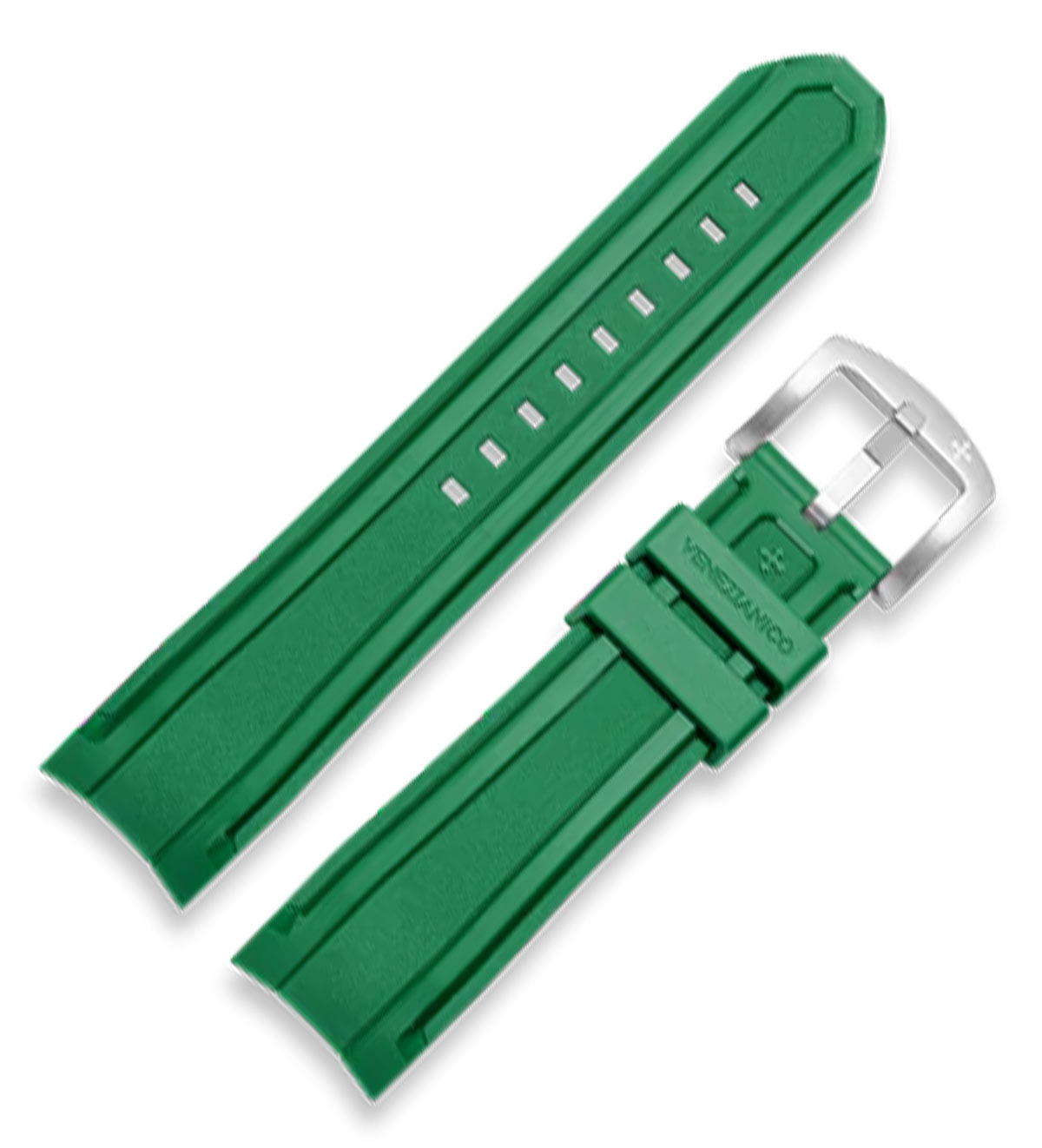 Originální zelený gumový řemínek o šířce 22 mm pro hodinky Venezianico. Vyrobeno z voděodolné, měkké a příjemné gumy, ideální na plavání. Na spodní straně je speciální vzor, díky kterému ruka dýchá a v horkých dnech se nepotí. Masivní ocelová přezka stříbrné barvy.