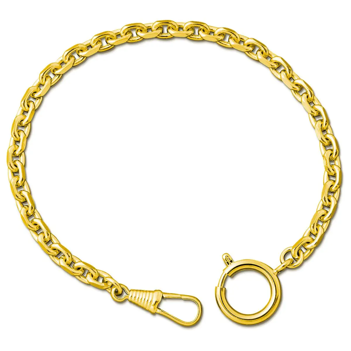 Na jednom konci řetízku je pružný kroužek pro uchycení k oděvu – například ke knoflíku vesty, poutku kalhot nebo kapse kabátu. Na druhém konci se nachází klip pro připnutí hodinek. Celý řetízek je proveden v teplé zlaté barvě, která dokonale ladí s pouzdry v odstínu žlutého či růžového zlata.
