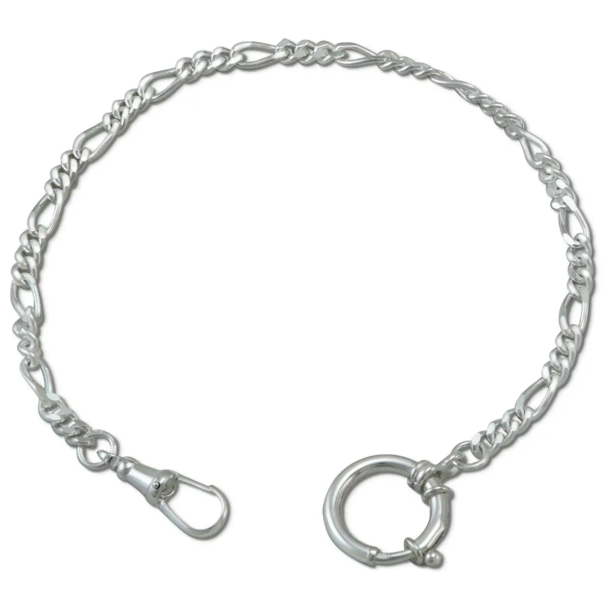 Řetízek s pancerovým spletením má šířku 4 mm a elegantní povrchovou úpravu. Na jednom konci je pružný kroužek pro připnutí k oděvu – například ke knoflíku vesty nebo poutku kalhot. Na druhém konci je karabina vhodná pro většinu standardních úchytů kapesních hodinek. Díky tomu je řetízek nejen stylový, ale i praktický.