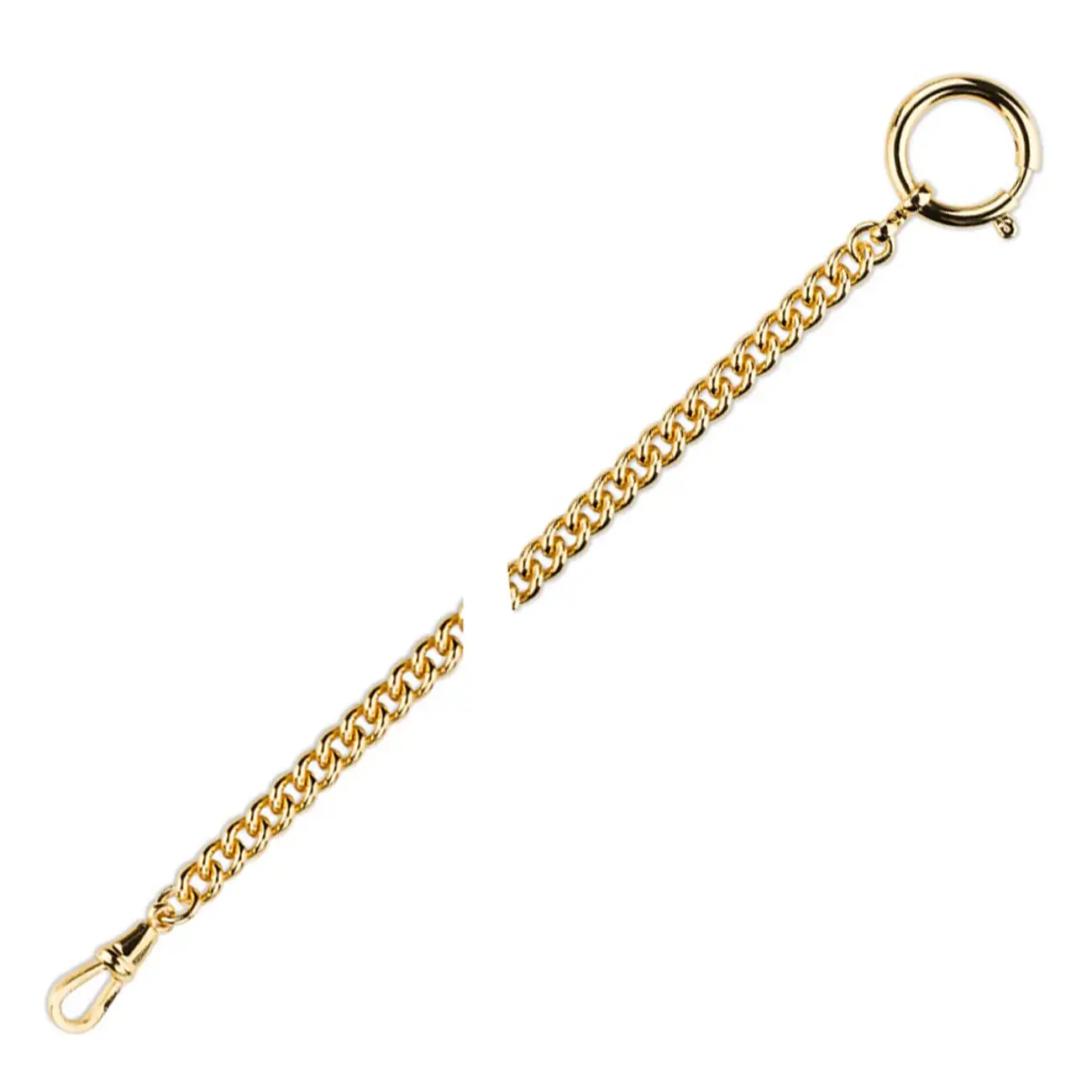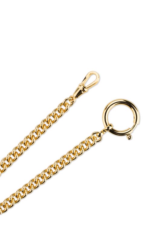 Pečlivě navržený řetízek je vybaven pružným kroužkem a pevnou karabinou, které zaručují bezpečné a pohodlné upevnění k oděvu i hodinkám. Teplý zlatý odstín dokonale ladí s pouzdry kapesních hodinek v podobném tónu a podtrhuje jejich luxusní charakter.