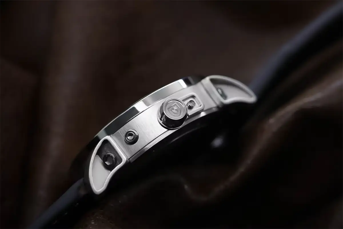 Ocelové pouzdro o průměru 43 mm s vypouklým safírovým sklem chrání modifikovaný automatický kalibr Sellita SW-11 a zaručuje spolehlivost i prestiž označenou znakem Made in Germany. Celkovou kompozici doplňuje ručně šitý kožený řemínek v zelené barvě, který dokonale podtrhuje jedinečný charakter tohoto astronomického mistrovského díla. Jde o časoměřič vytvořený pro osoby hledající technickou dokonalost a neotřelý design ve světě vysokého hodinářství.