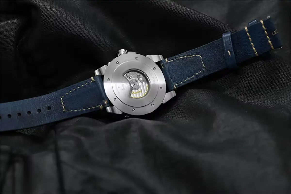 Srdcem tohoto německého instrumentu je modifikovaný automatický kalibr Sellita SW-11, jehož mechanismus fází Měsíce se vyznačuje chybou pouhého jednoho dne za 122,5 roku používání. Model Parallax III nabízí plnou dynamiku díky centrální sekundové ručce a preciznímu ukazateli data s červenou hvězdičkou, který kontrastuje se šedí číselníku. Díky integrovanému korektoru na osmé hodině si může uživatel samostatně přizpůsobit zobrazení fáze Měsíce pro severní nebo jižní polokouli.